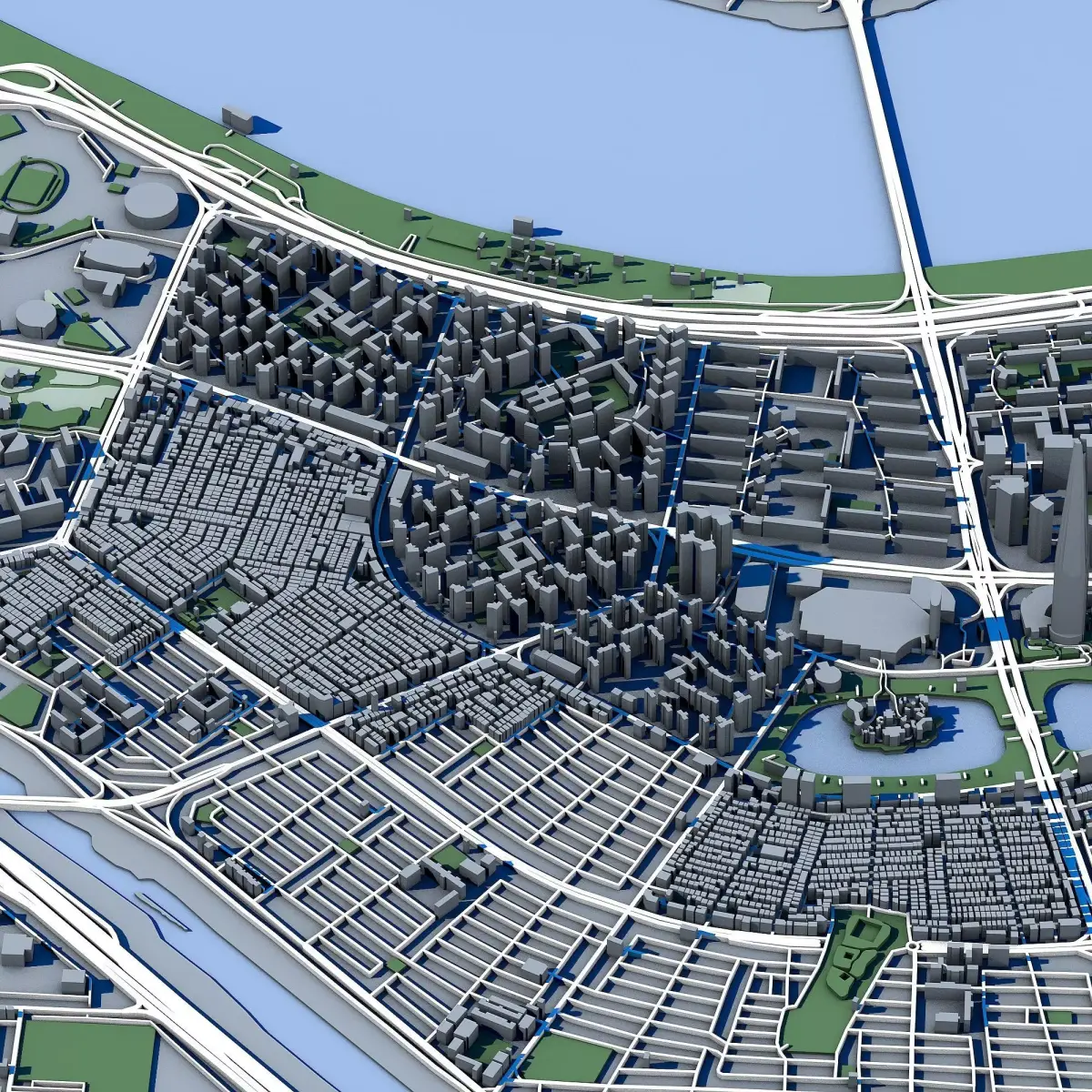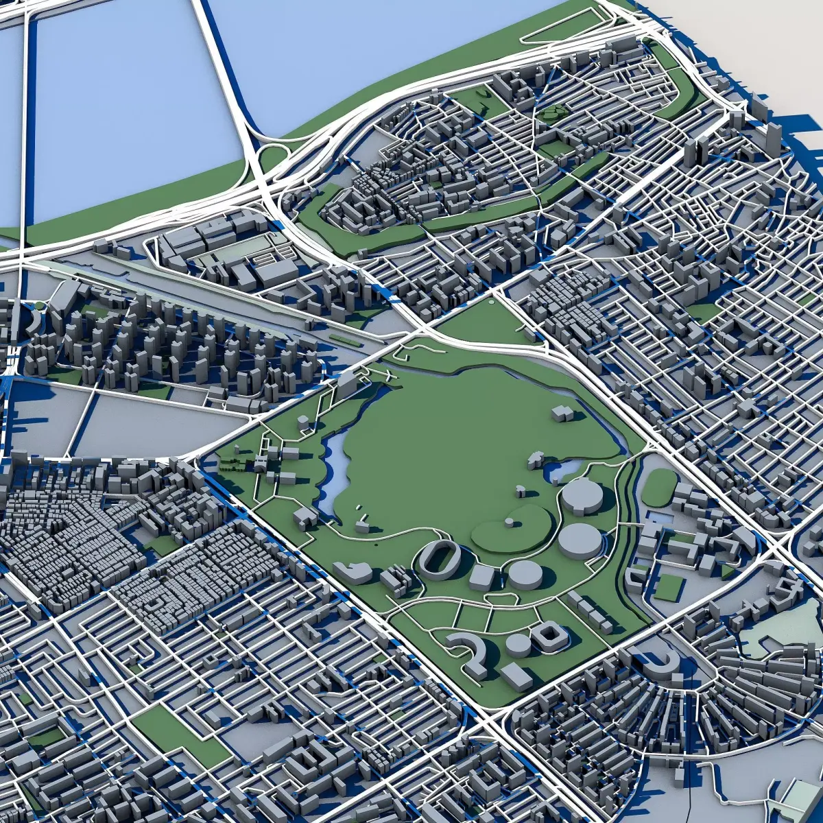 The .ZIP folder contains separate .STL files – buildings, water, vegetation, base etc.