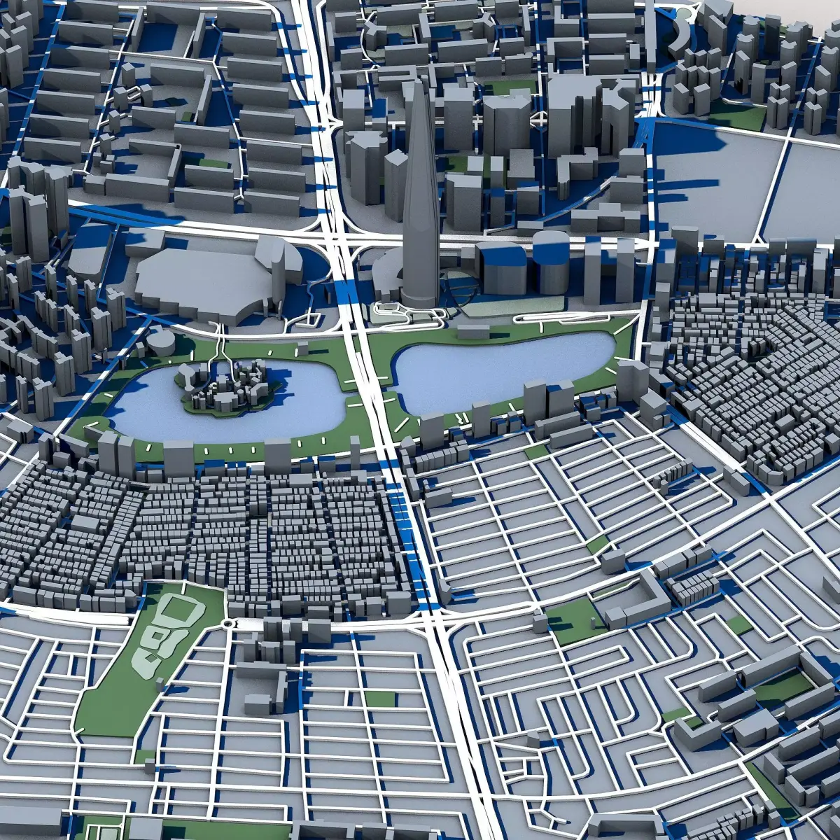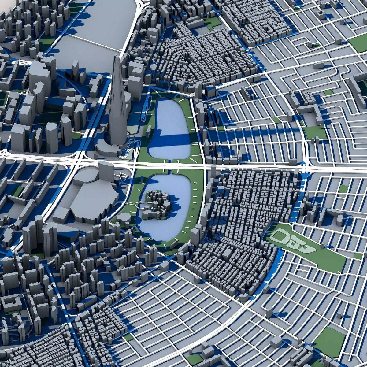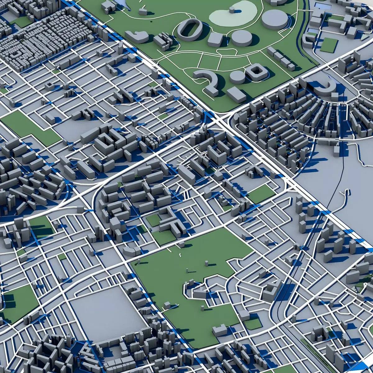 The .ZIP folder contains separate .STL files – buildings, water, vegetation, base etc.