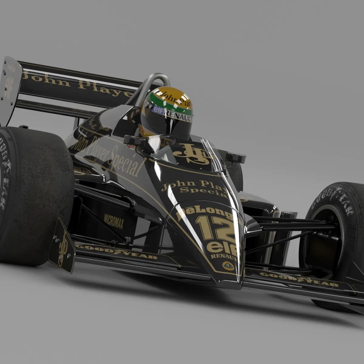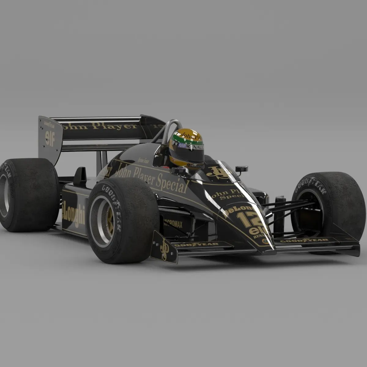The Lotus 98T from the 1986 Formula-1 Season comes with the iconic helmet of its legendary pilot - Ayrton Senna. The model has both Low Poly and High poly versions and the texture data of the livery of the car.