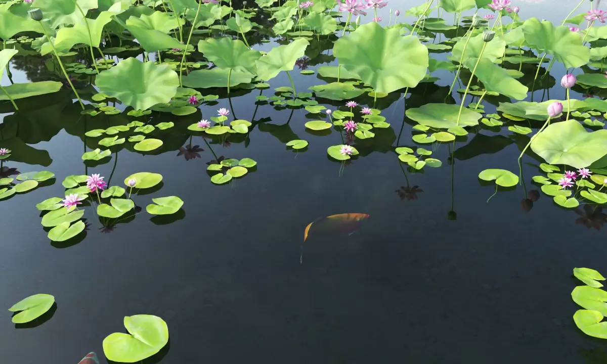 Lotus and Koi Fish Pond 01 Low-poly 3D model