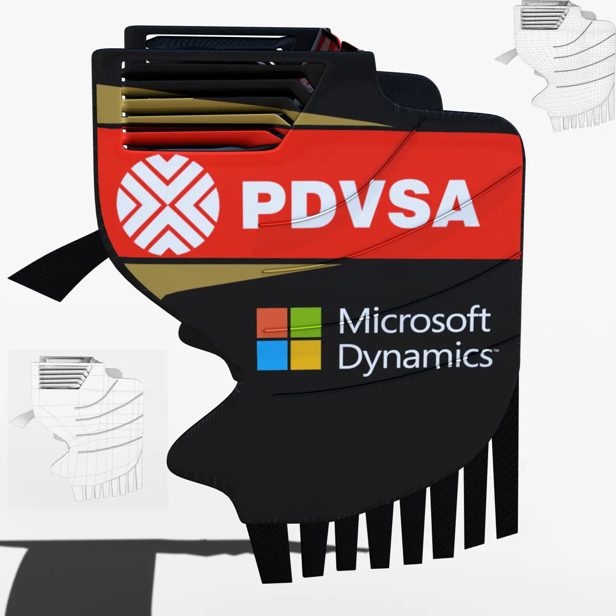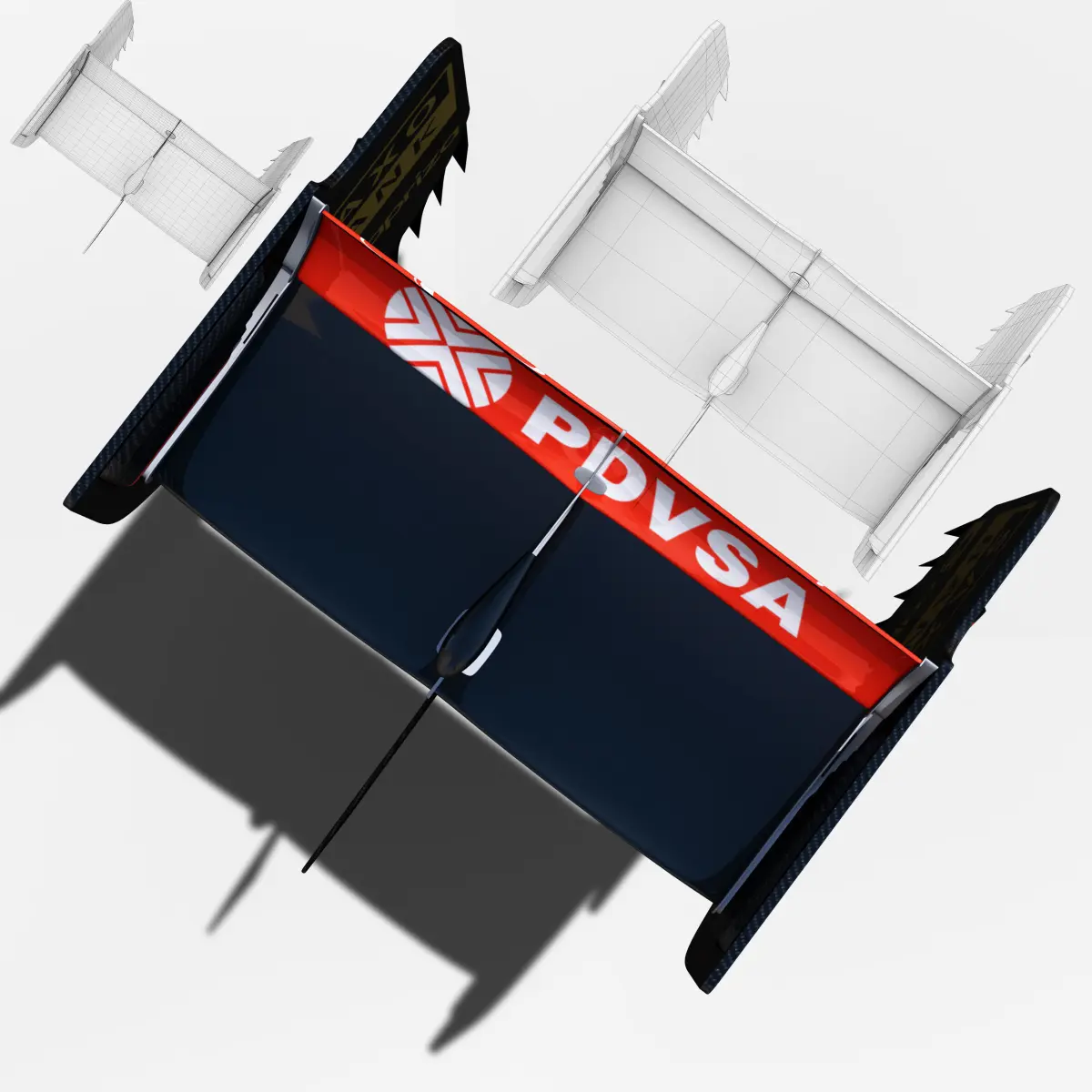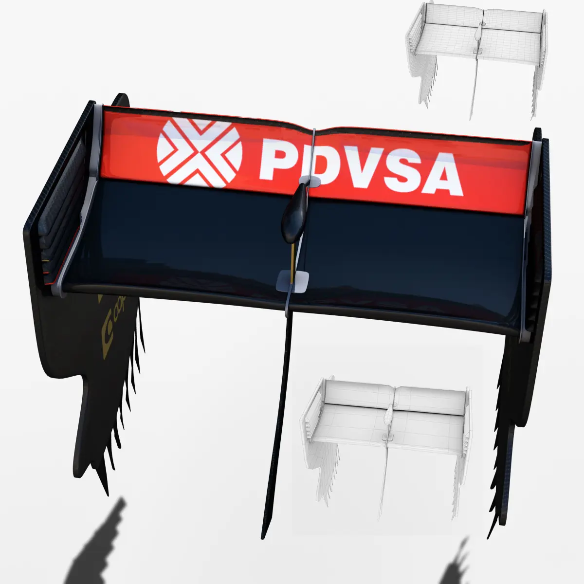 This is a 3D low poly model ,it was designed to provide a high definition in a low poly. Standard low-poly mesh with specific poly count. It`s the most accurate and realistic rear wing of the Lotus E23 of the market. This is a recreation of Lotus E23 rear wing model,it can suffer modification over the season.The model is completely ready for use visualization in maya. For low poly model simply press 1 and for the high resolution press 3. In Cinema4d go to function menu and subdivide. In the low poly: Poly count : 2573 Vertex count : 2869In the high poly: Poly count : 41168Vertex count : 42235Textures included. Each texture is in jpg format and have a 4K texture resolution for high quality The files are dae, obj, fbx, mb ,c4d and 3DS.In formats c4d, 3ds, dae, obj and fbx model exported to standard materials (textures), not contain mental ray shaders. files with the model does not contain extraneous or hidden objects (lights, cameras, etc.) original file format maya