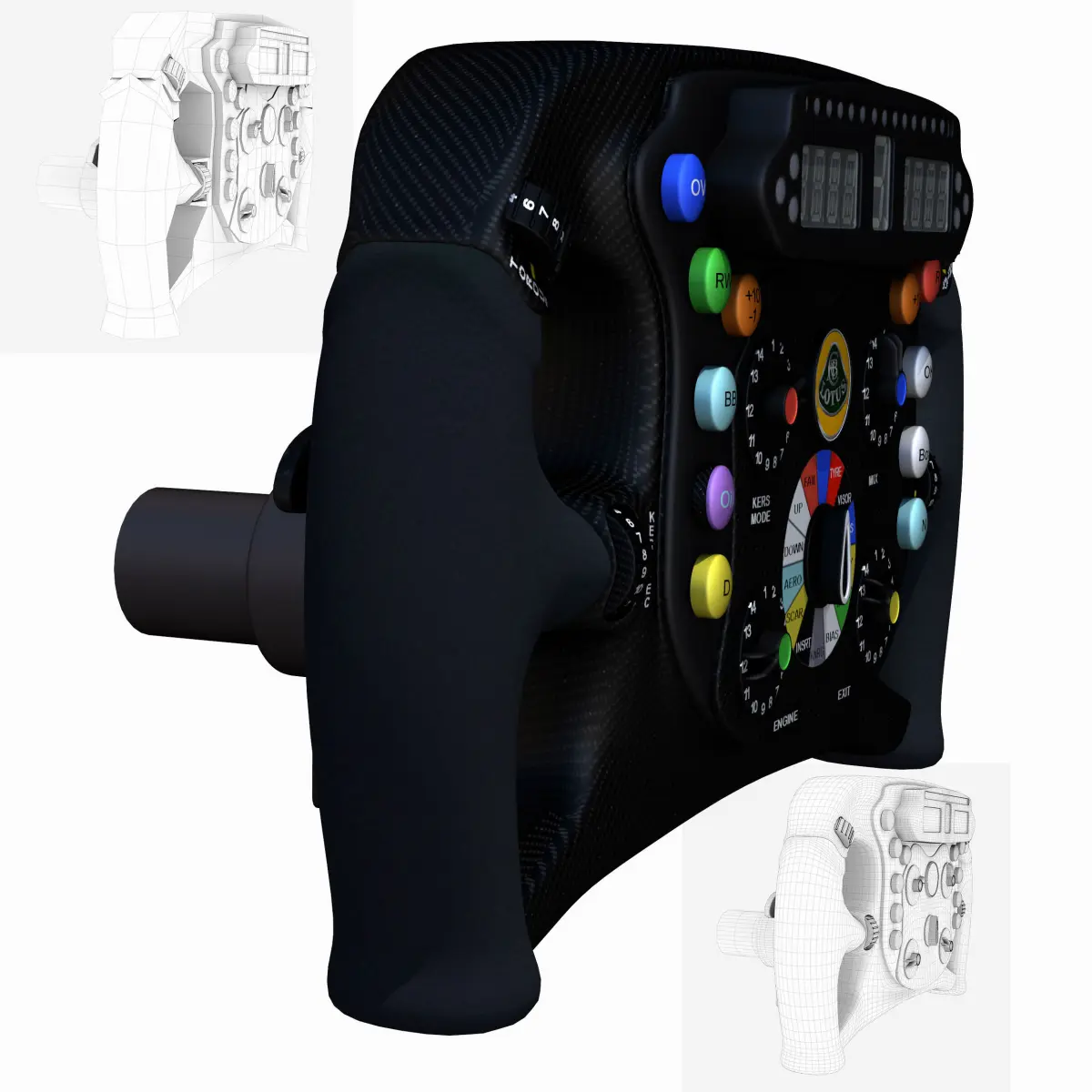 This is a 3D low poly model ,it was designed to provide a high definition in a low poly. Standard low-poly mesh with specific poly count. It`s the most accurate and realistic steering wheel of the Lotus E23 of the market. This is a recreation of Lotus E23 steering wheel model,it can suffer modification over the season.The model is completely ready for use visualization in maya. For low poly model simply press 1 and for the high resolution press 3. In Cinema4d go to function menu and subdivide. In the low poly: Poly count : 8060Vertex count : 8396In the high poly: Poly count : 128960Vertex count : 130271Textures included. Each texture is in jpg format and have a 8K texture resolution for high quality The files are dae, obj, fbx, mb ,c4d and 3DS.In formats c4d, 3ds, dae, obj and fbx model exported to standard materials (textures), not contain mental ray shaders. files with the model does not contain extraneous or hidden objects (lights, cameras, etc.) original file format mayaRender in linear srgb