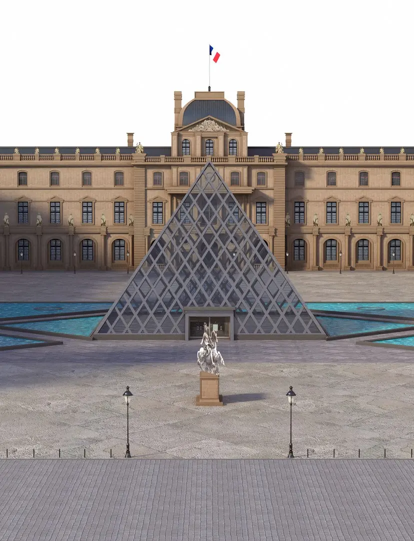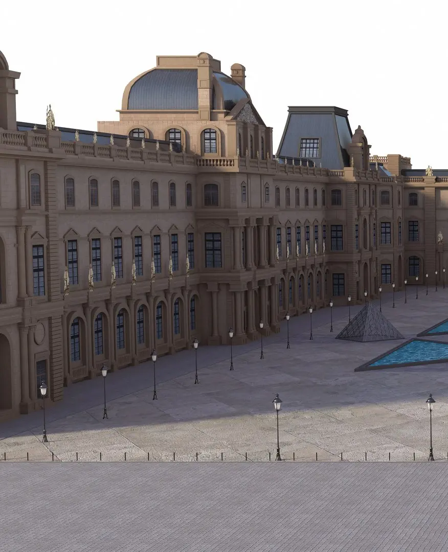 The Louvre Palace of Paris is high quality and realistic model. This model has materials fully textured, detailed design that allows for close-up renders, it was originally modeled in Autodesk Maya 2016 using Polygons and rendered with Mental Ray.