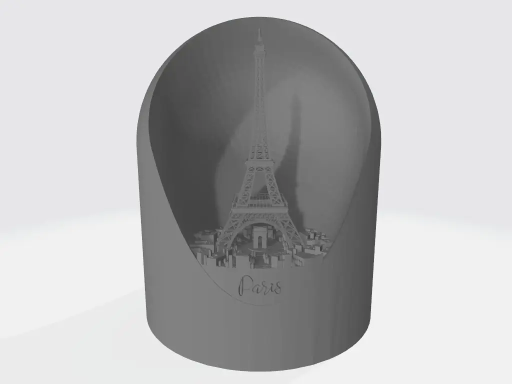 The Large version is easily put together. Everything just slides together and you're done. Designed to be printed with Resin printers but can be printed with FDM printers as well, although I can't promise you'll get the same great details as you would with resin, like the top of the Eiffel Tower, small bushes, or Paris engraving on the front. For resin printers, everything has been designed where it doesn't need any supports if printed upright. Same might be possible with FDM printers because the overhangs are very small (Although the arch at the very top might need some). I print the diorama insert piece in clear resin and don't hollow it out. It's a solid piece. I found it looked better that way. Then I print the shell and base in white and spray paint them.