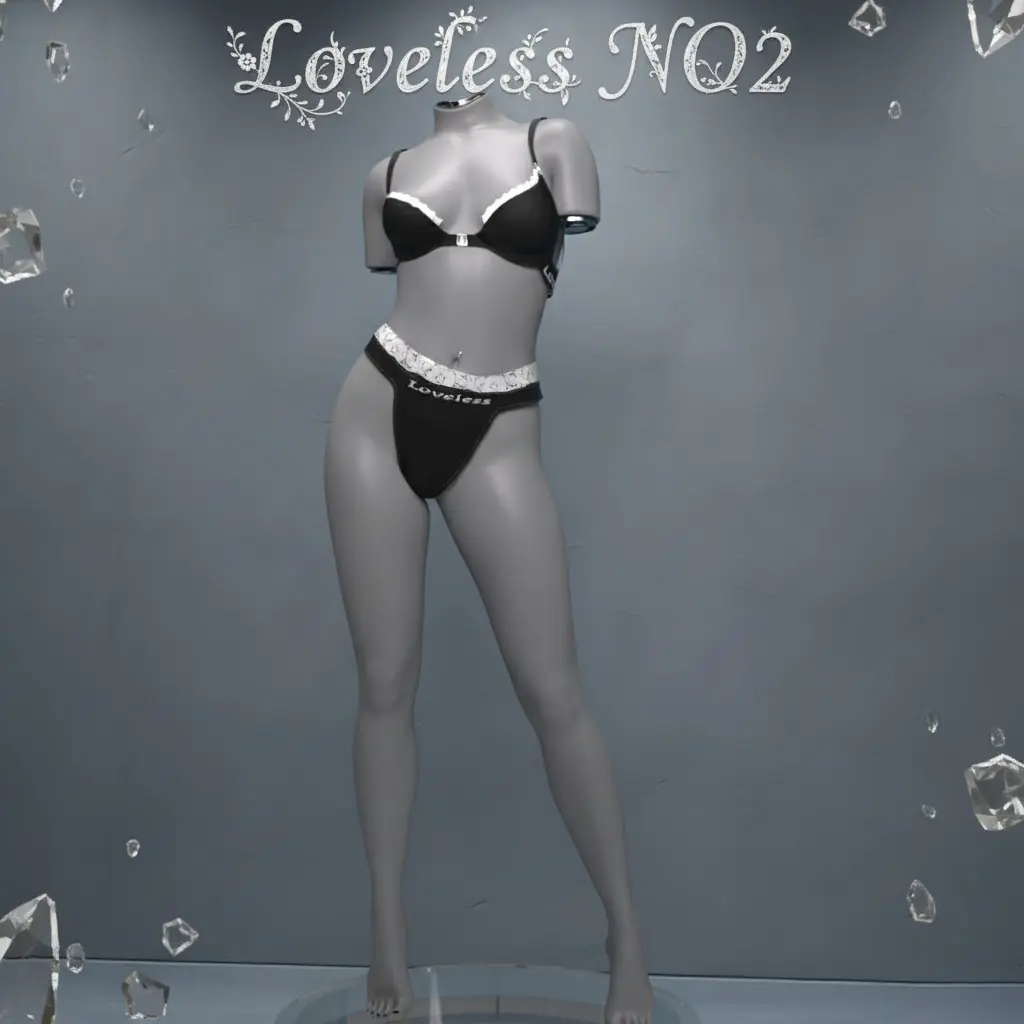 Introducing the next addition to the Loveless line: Loveless Underwear NO2 for Genesis 9 Female! This stylish set features a matching bra and thong with contrast lace trimming and a signature Loveless detail on the waistband.