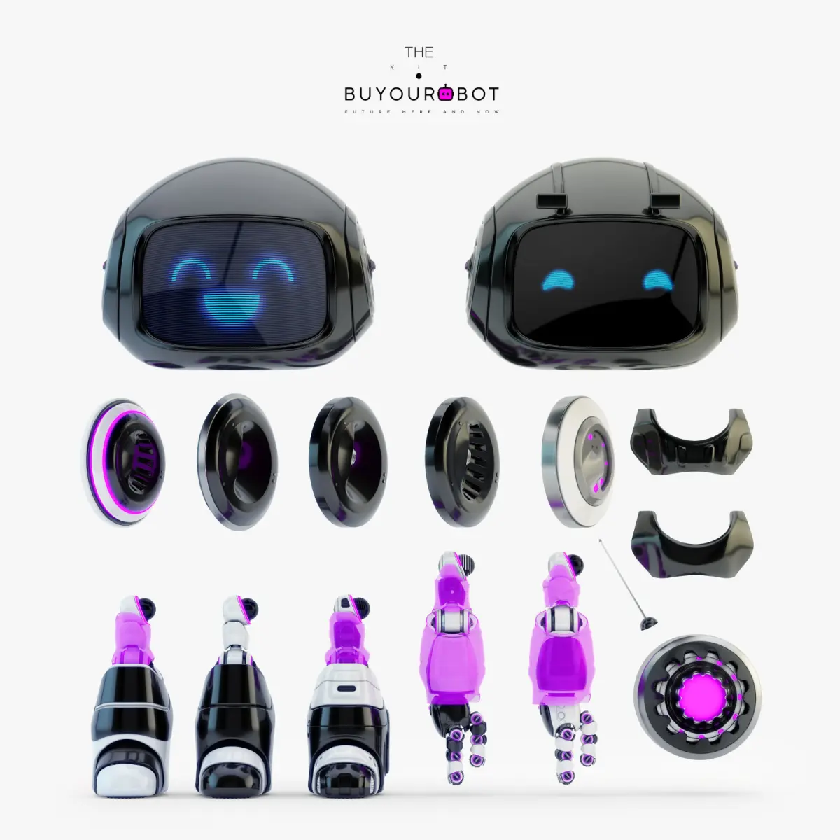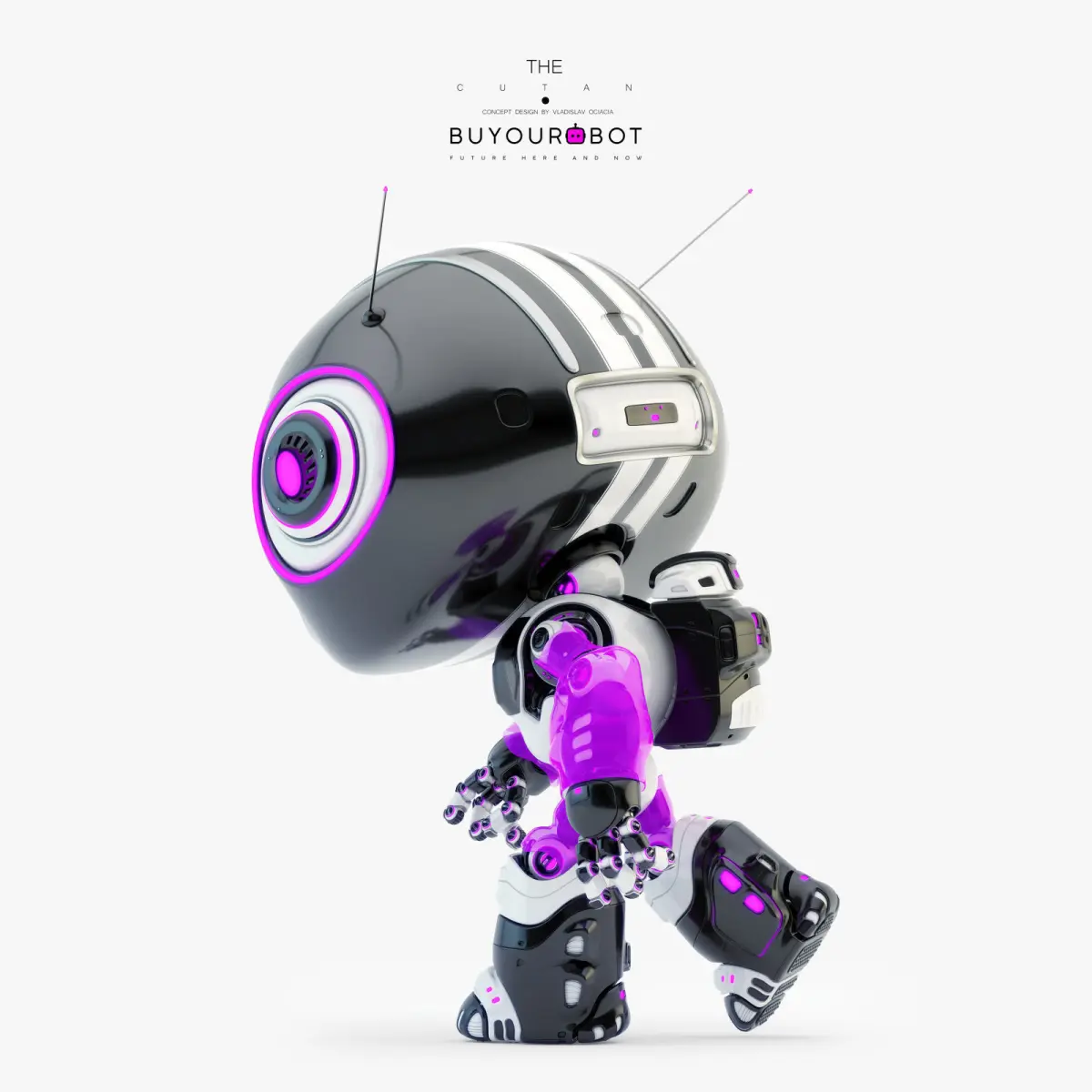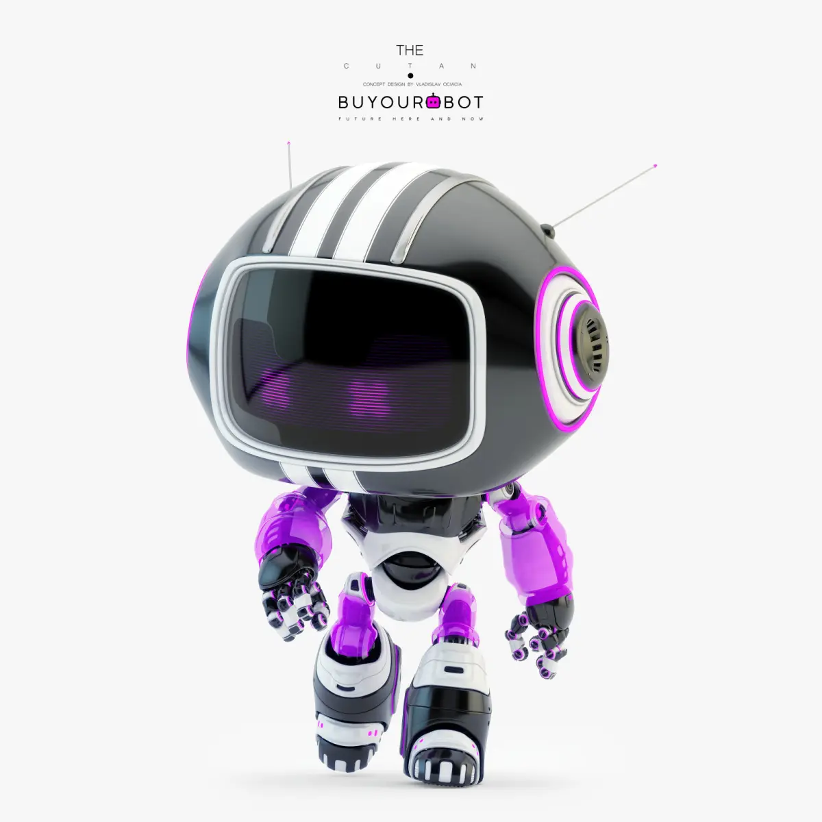 Lovely black robot - companion III, 3d model with funny antennas