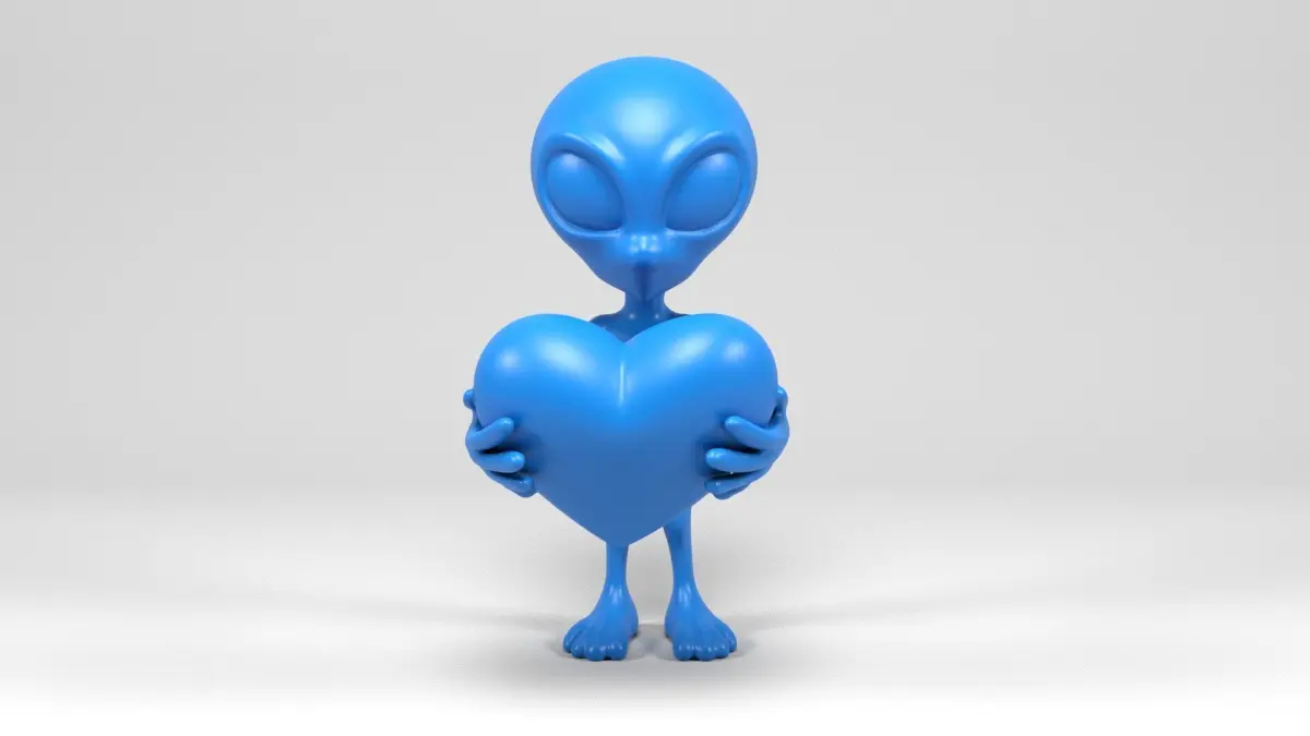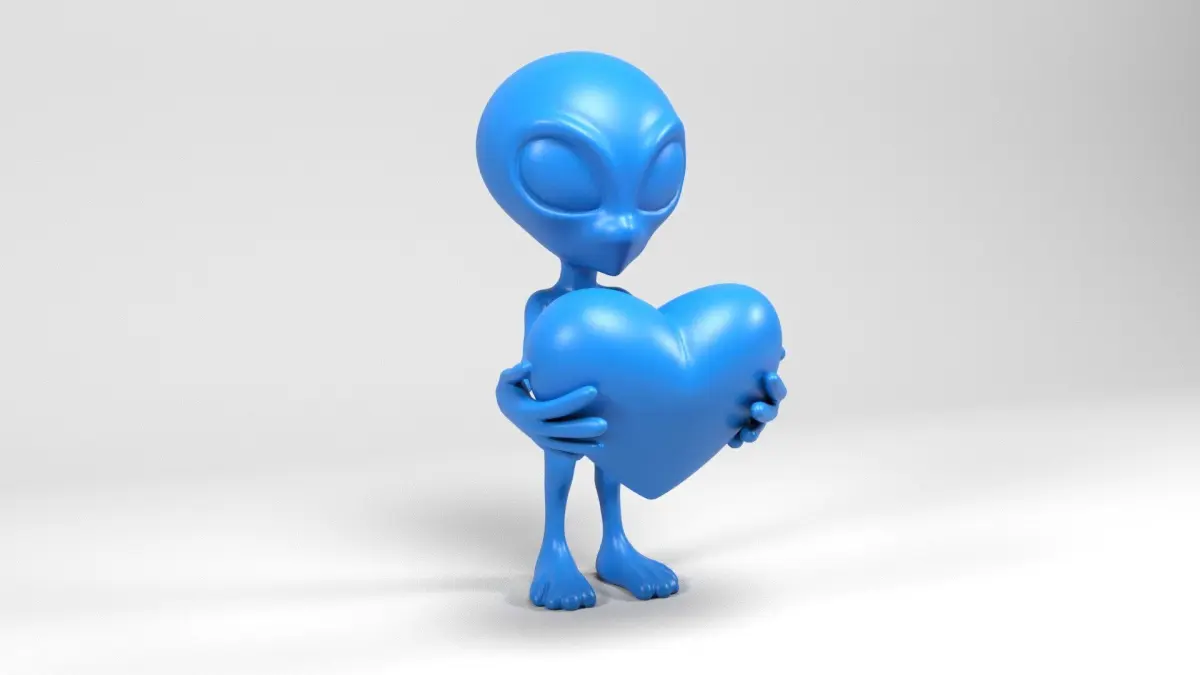3d model specifically created for 3D printing in different formats ready to print. Model of a Loving Alien with a heart . The following formats are included: STL, 3MF, FBX, OBJ, MAX and Blender. Model printed and tested with bambu lab and Anycubic printers.