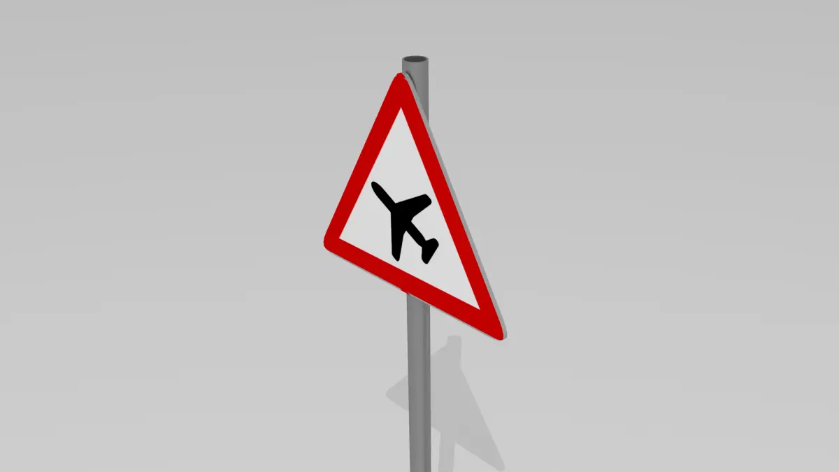 A low flying planes sign modeled to specs, with materials and texture applied.