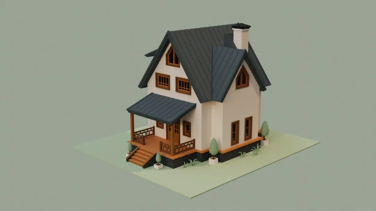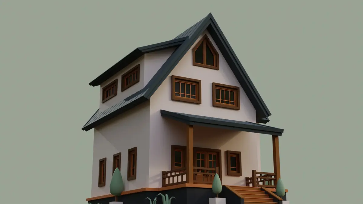 I created this low poly House by using Blender 3.0.1. (Only exterior )House, Ground, Plants and Grass are separated objects.