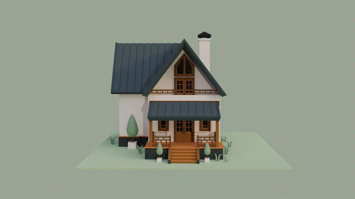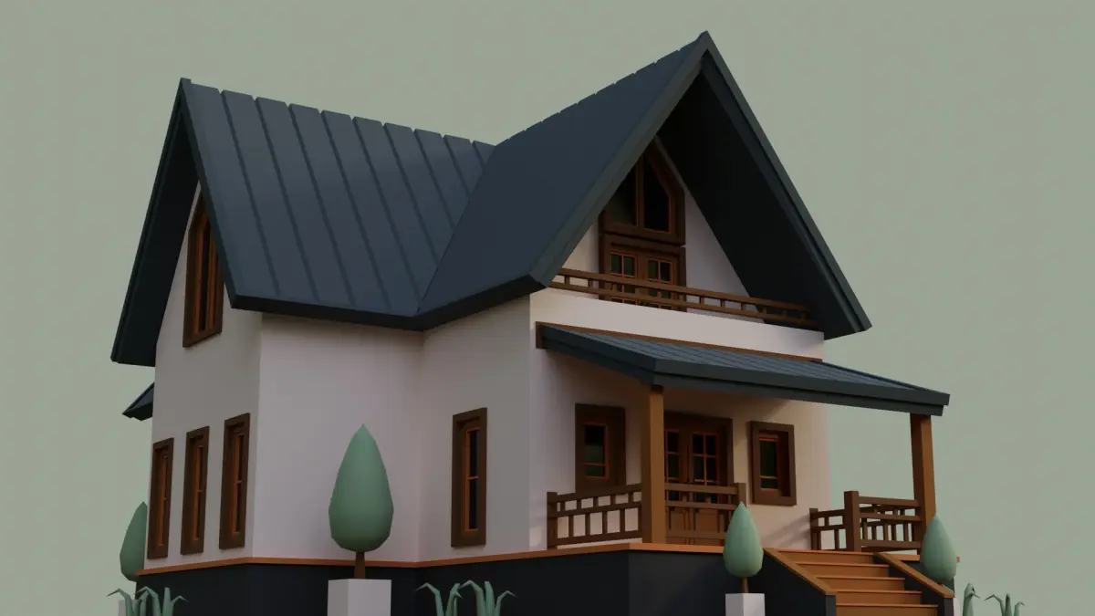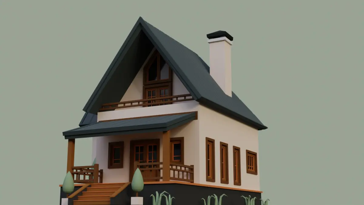 I created this low poly House by using Blender 3.0.1. (Only exterior )House, Ground, Plants and Grass are separated objects.