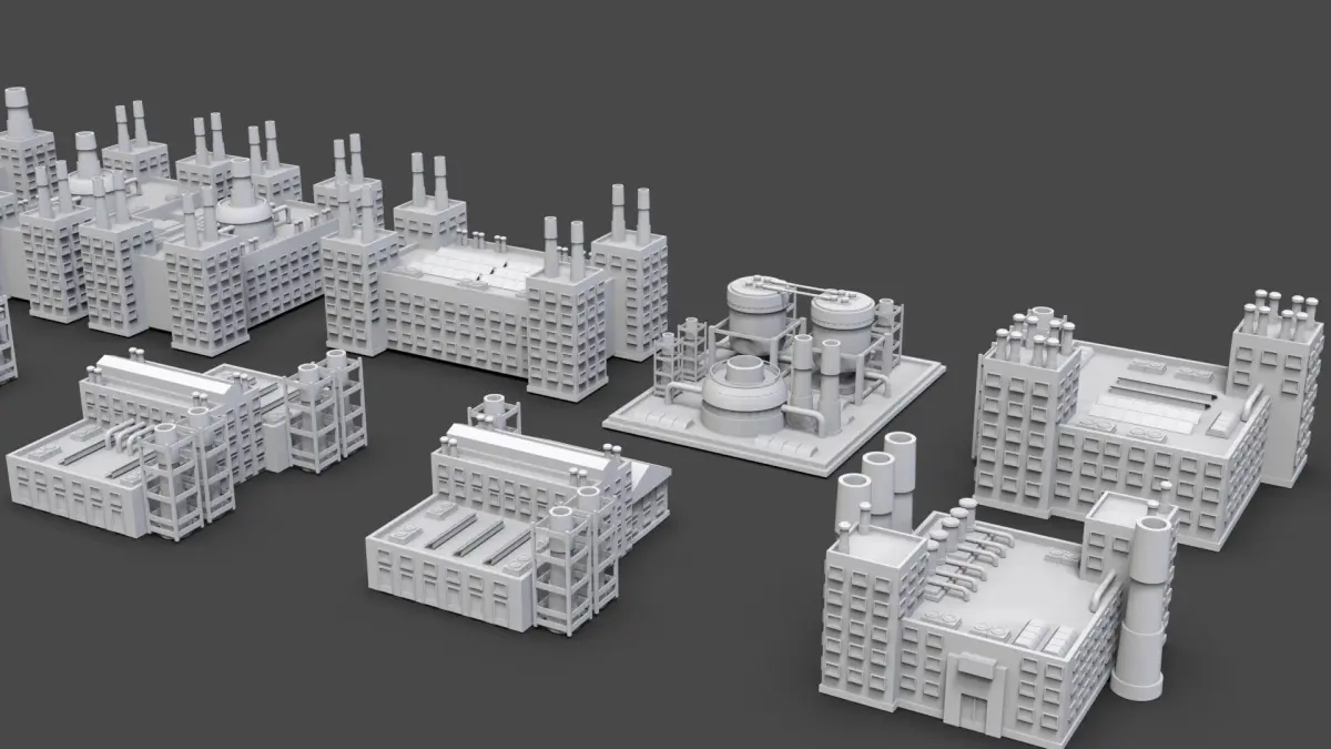 Mini Pack 5: https://www.cgtrader.com/3d-models/exterior/industrial-exterior/low-poly-10-industrial-buildings-mini-pack-5-untextured