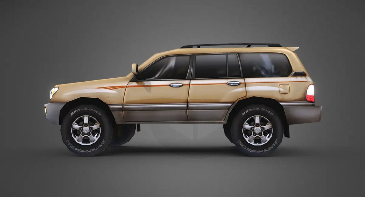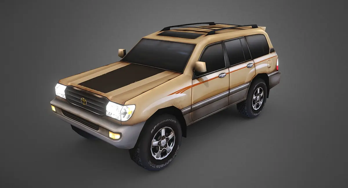 A (very) low poly model of the 100 series Toyota Landcruiser, a legendary 4x4 offroader in production from 1998-2007. The Landcruiser represents the pinnacle of Toyota reliability, an over engineered truck combining luxury and go-anywhere ruggedness. This model was created in a very low poly style best suited for real time engines and mobile games. The first 5 presentation images show how the model appears in a game engine with basic three point lighting, the following 3 show the model as it appears in the max file you are purchasing. The mesh is divided into 4 pieces: the main body, the front wheels, the back wheels, and the toyota badges/emblems. Two color variants are included along with the PSD file for easy texture modification. If you have any questions about the model feel free to contact me!