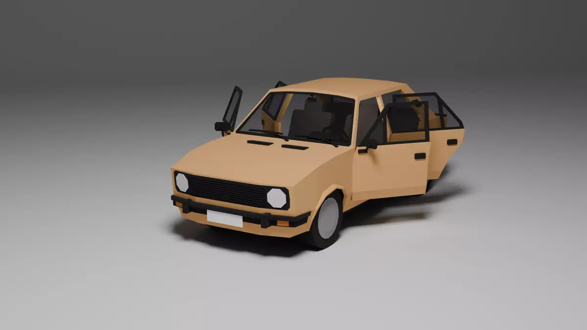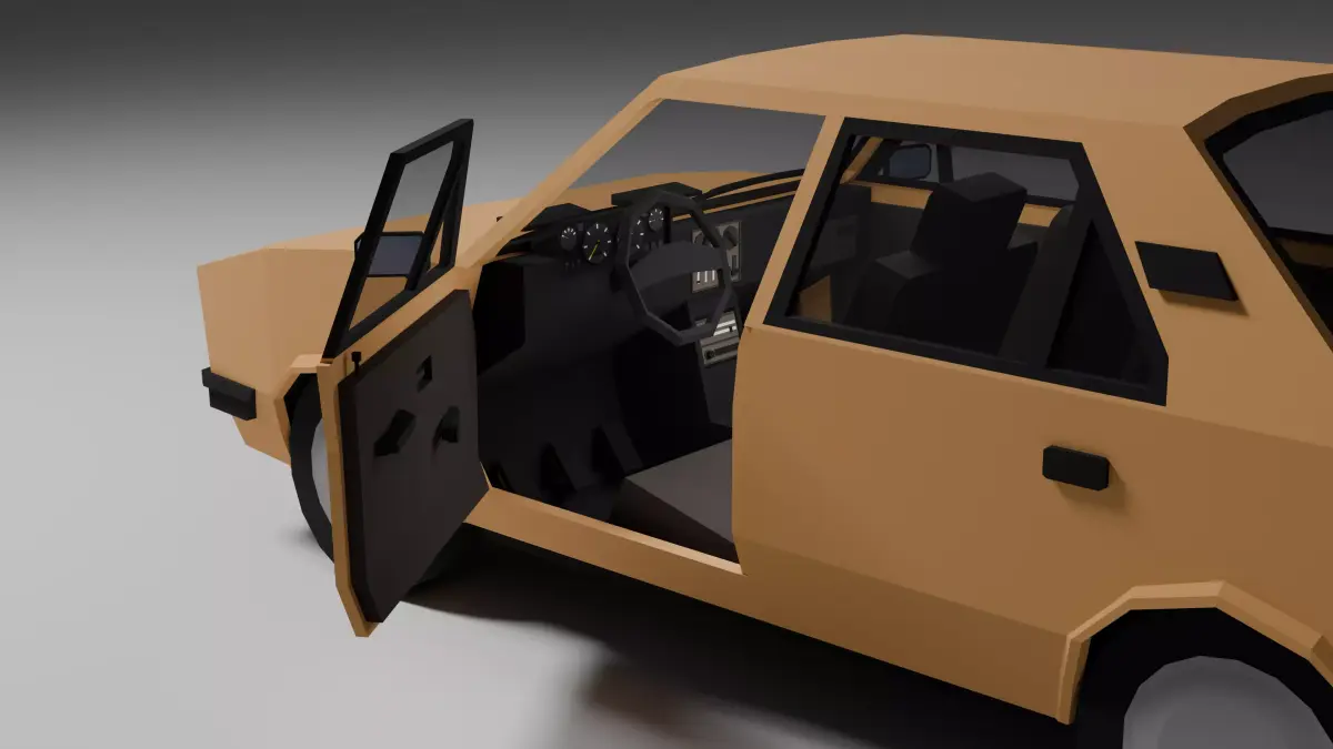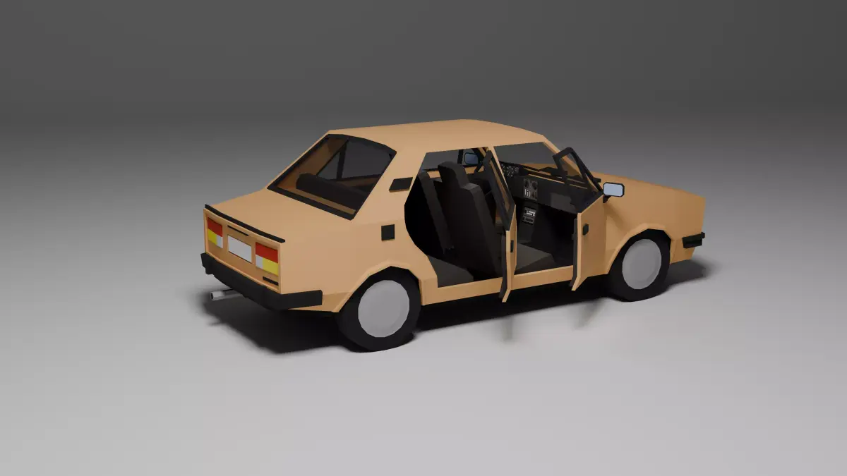 Low poly 3D model of a classic 1980s compact sedan, perfect for games, low poly environments, or prototyping. This asset includes:
