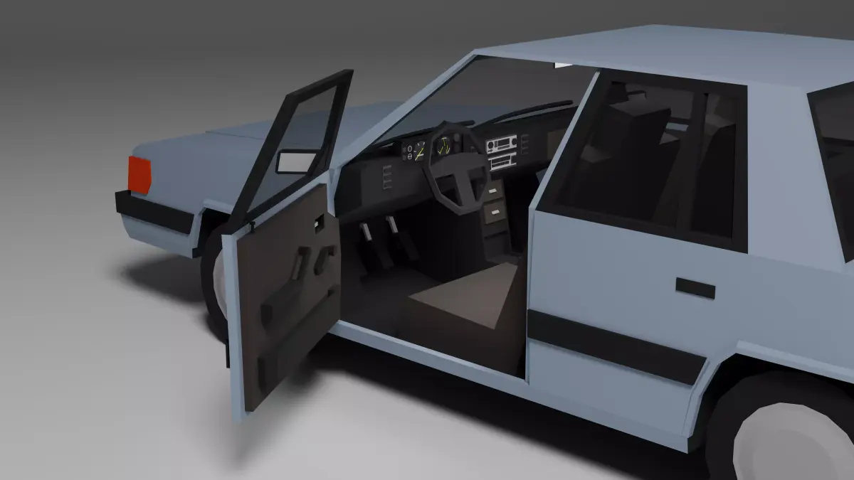 Low Poly 1980s Compact Sedan 3D Model Car15 Low-poly 3D model
