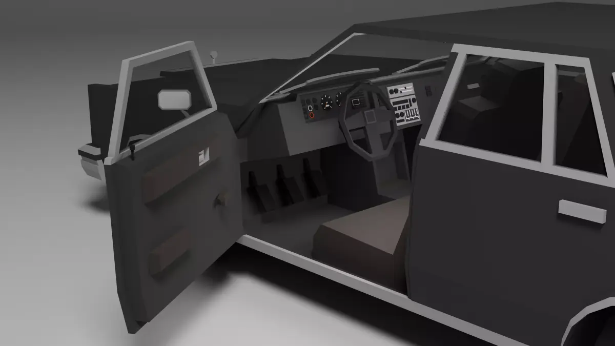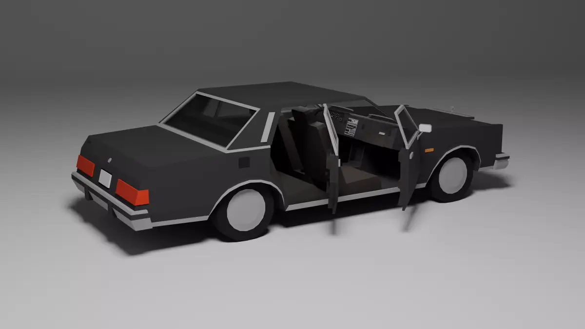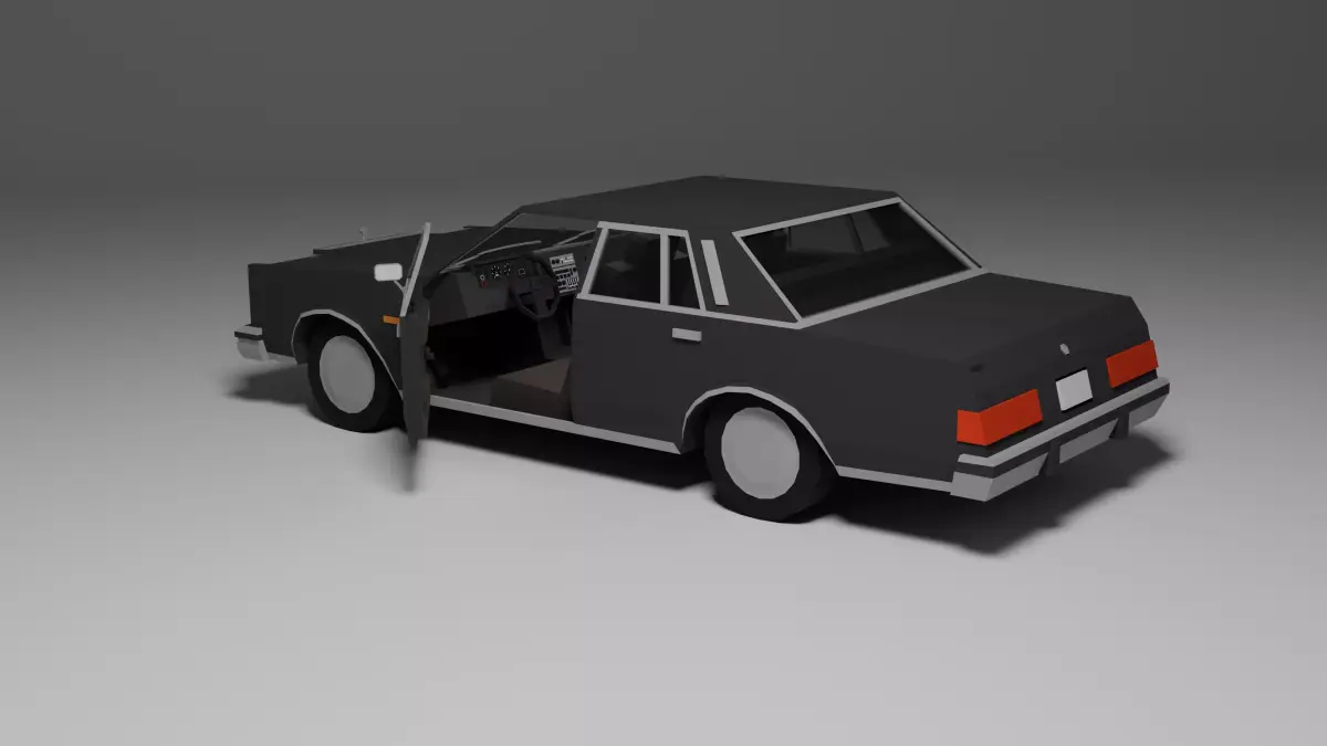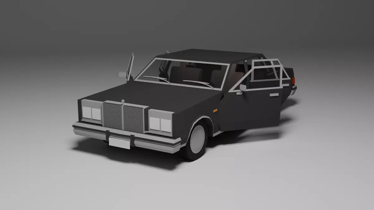 Low poly 3D model of a classic 1980s luxury sedan, perfect for games, low poly environments, or prototyping. This asset includes: