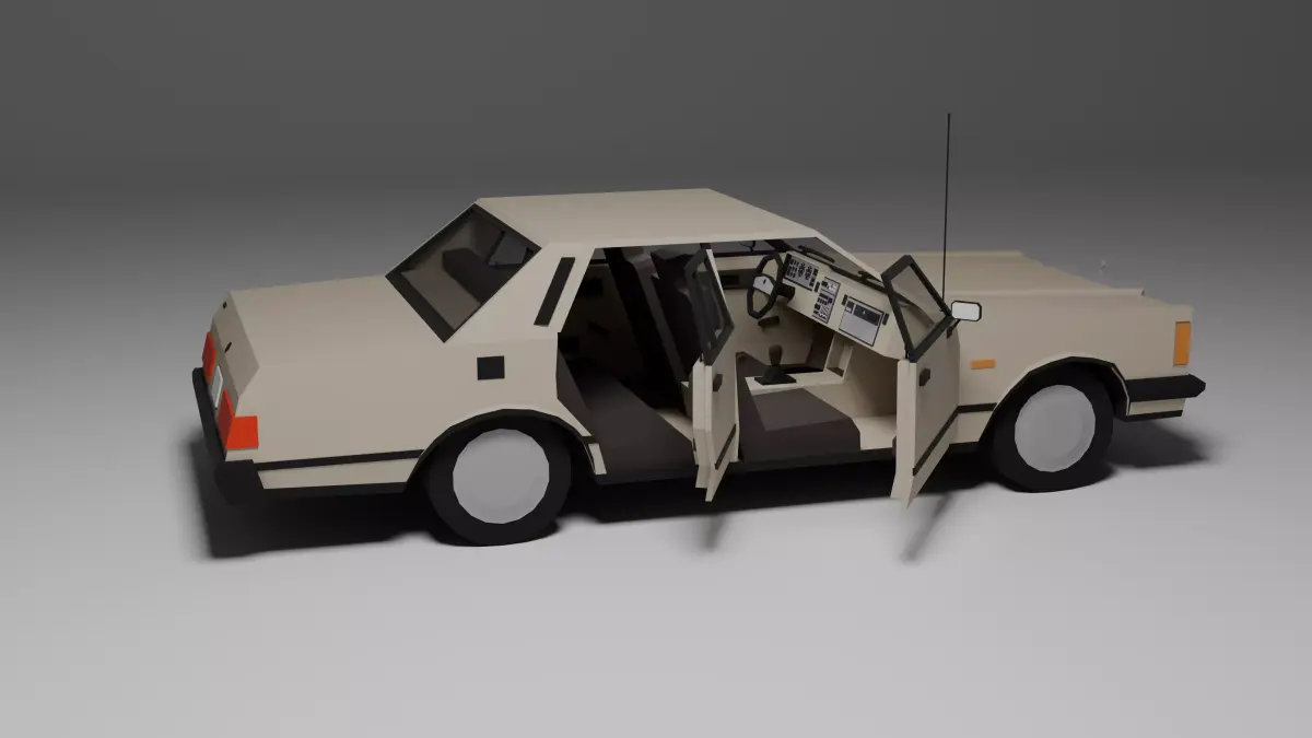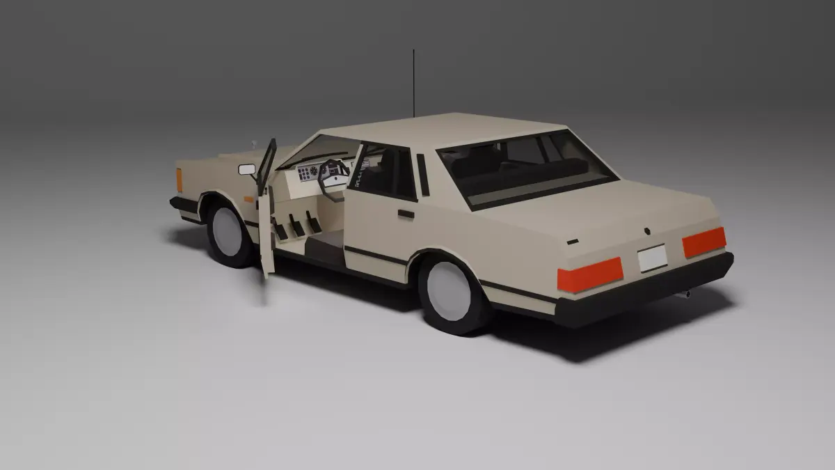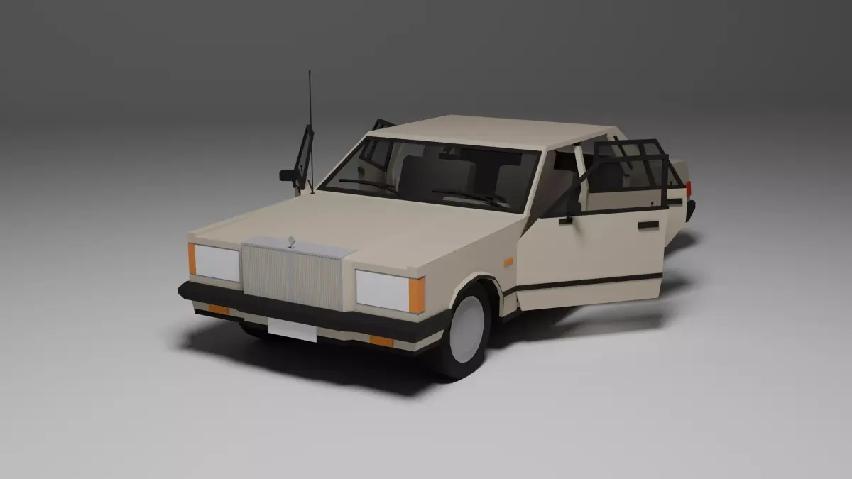 Low poly 3D model of a classic 1980s luxury sedan, perfect for games, low poly environments, or prototyping. This asset includes: