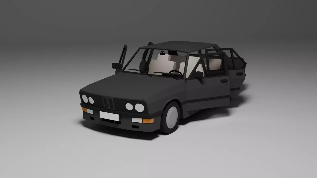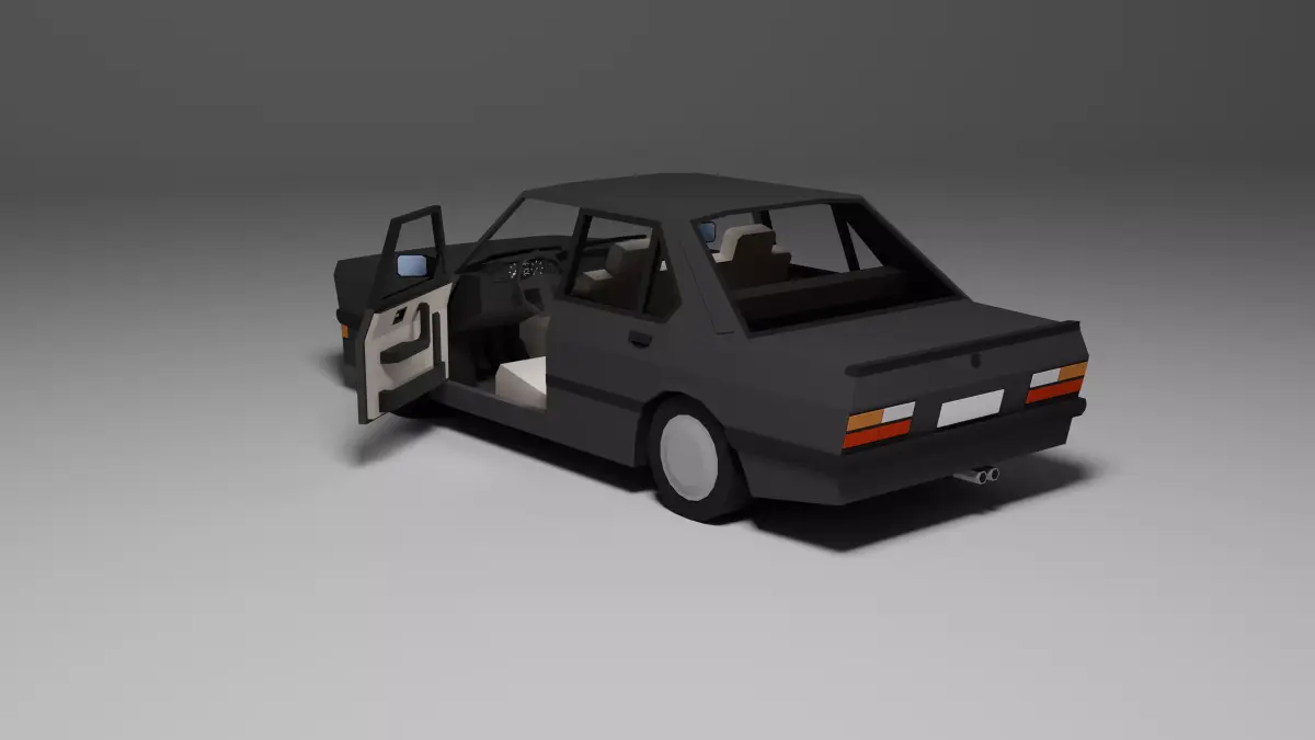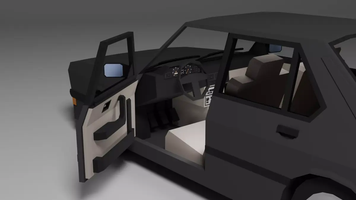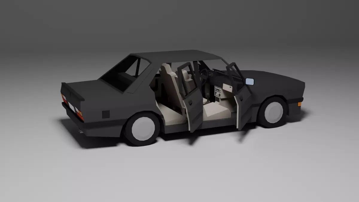 Low poly 3D model of a classic 1980s sport sedan, perfect for games, low poly environments, or prototyping. This asset includes: