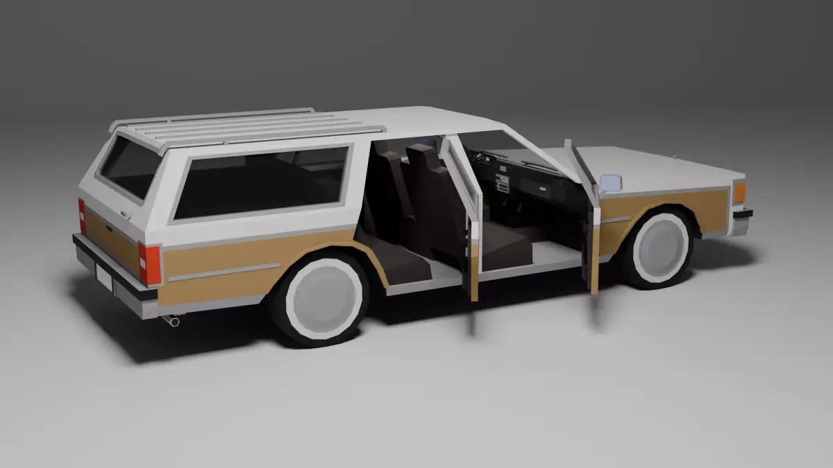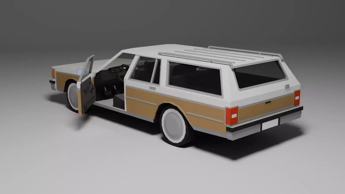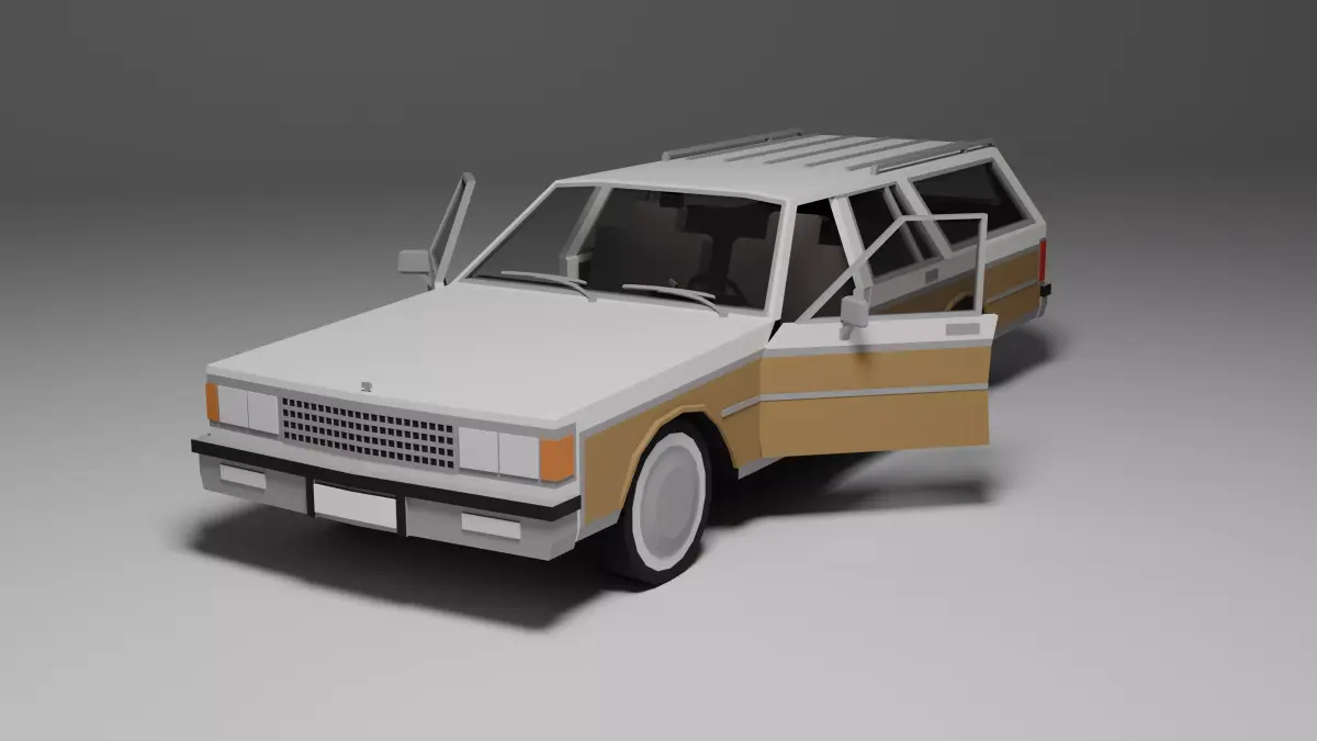 Low poly 3D model of a classic 1980s station wagon, perfect for games, low poly environments, or prototyping. This asset includes:
