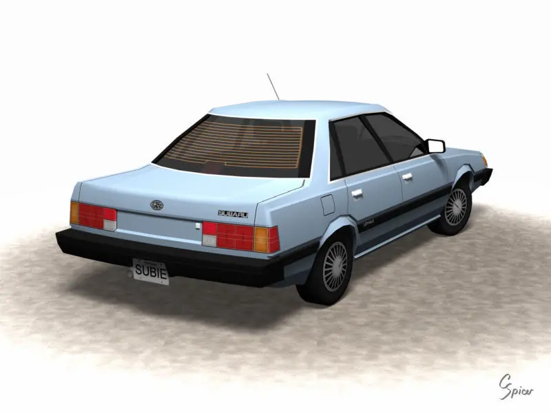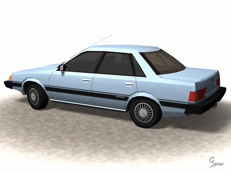 Low-polygon 1992 Subaru Loyale, ready for use in low-poly CGI applications. Modeled in Carrara Studio and provided in multiple file formats. Vehicle is exterior only. Interior is modeled above the window line to create the necessary silhouettes through the glass. Undercarriage components are not modeled.