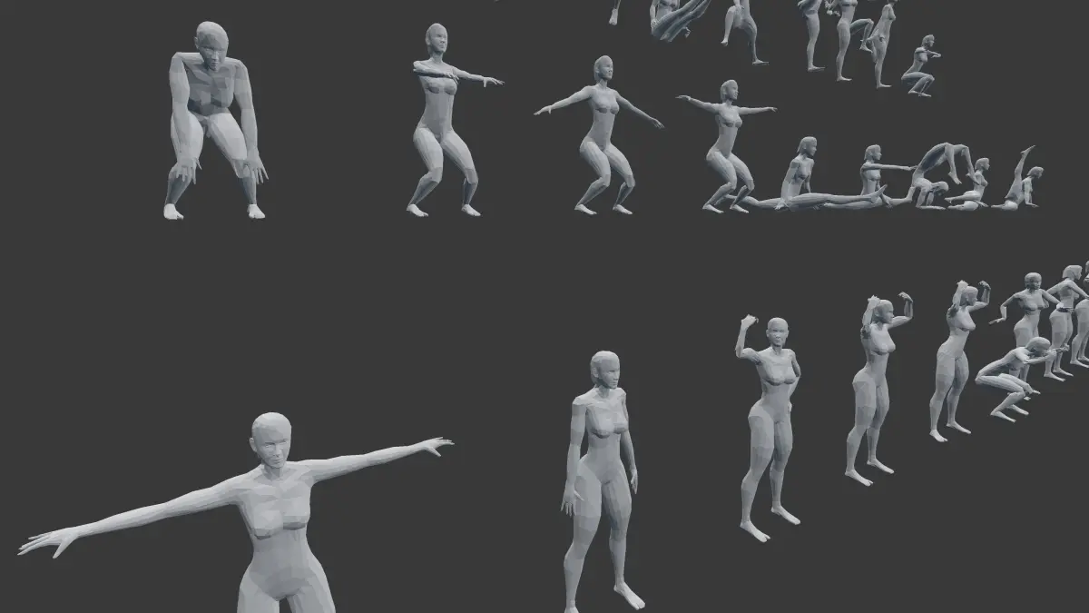- Blender ->beach_woman_collection.blend -> 1 blend file/50 meshes joined/ not rigged/ 1 pose per mesh.