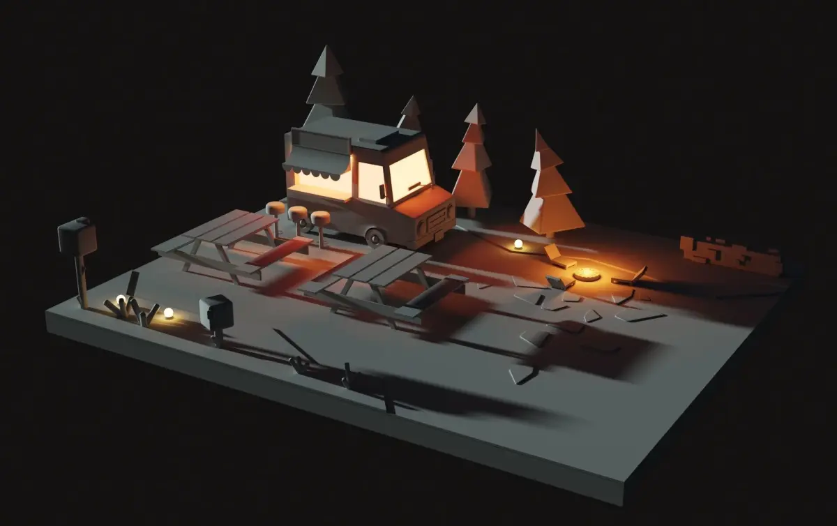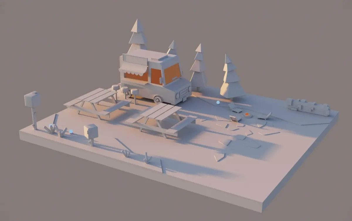low poly 3d modular location, stylized as a town of clay.Program: 3Ds Max