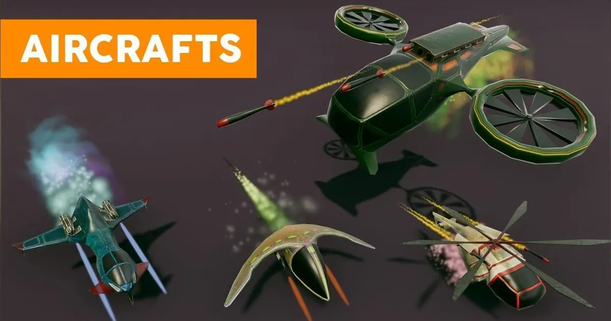This package contains 3d models of Aircraft models in .fbx file format textures. There are 4 different aircraft design with their special weapons. Suitable for any game design including fly and fire dynamics.
