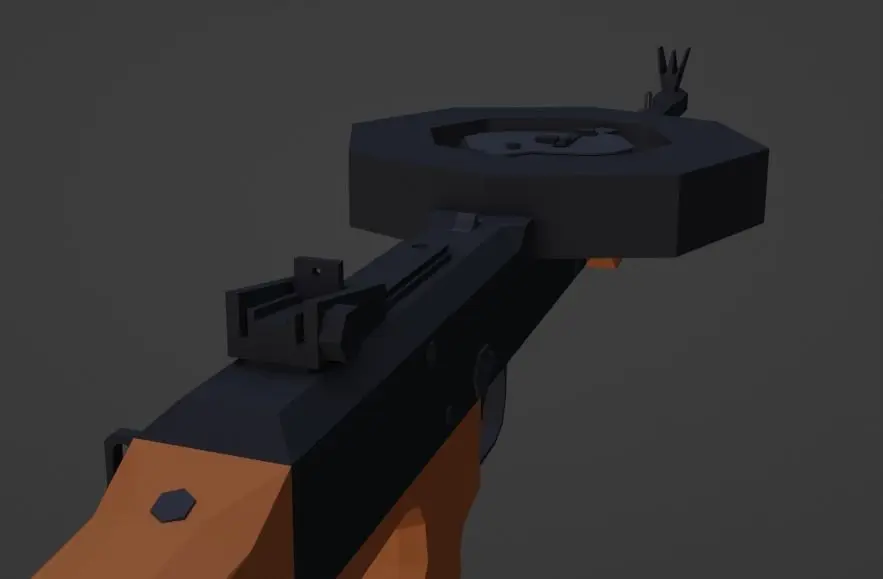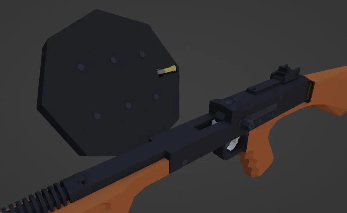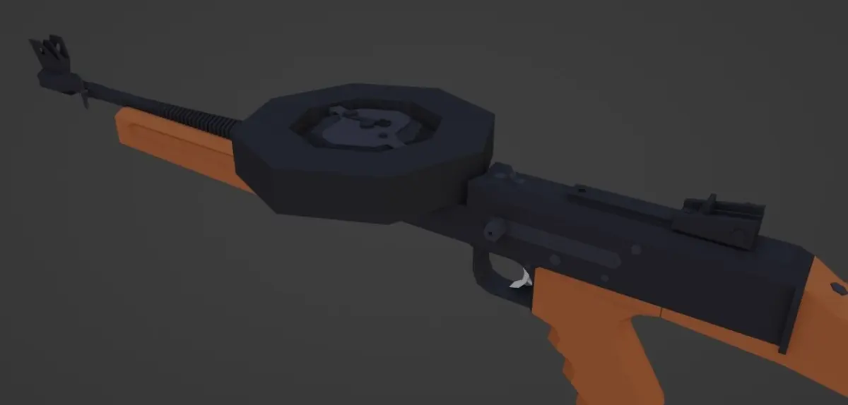 Essentially a 22lr laser firing at 1200 rounds per minute, with a 177 round drum magazine.