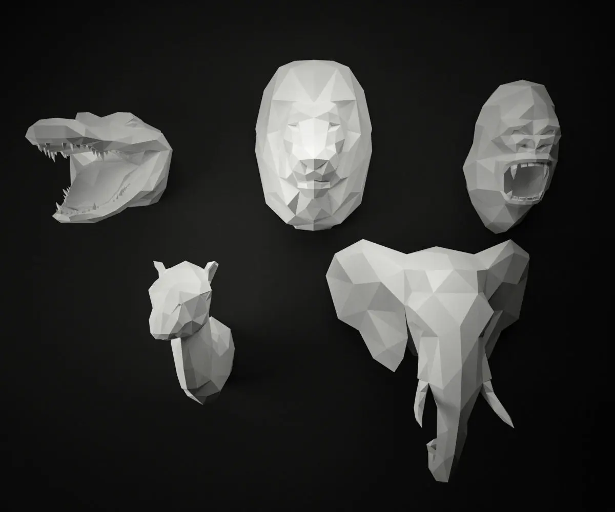 Low Poly Animal Heads SET 2 Low-poly 3D model