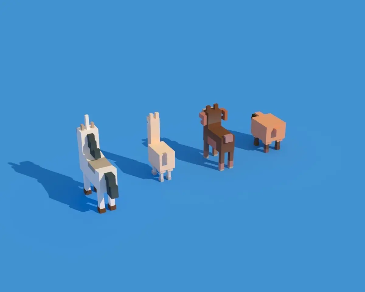 Present to you the Low Poly Animals included: unicorn, llama, sheep, deer. The 3D model was created in modern style with acute forms and has Crossy Road style. The main feature of 3D models is the texture of 6 x 6 pixels, which makes them optimized for games.The models comes in a range of formats that will easily import to all major 3D software packages.
