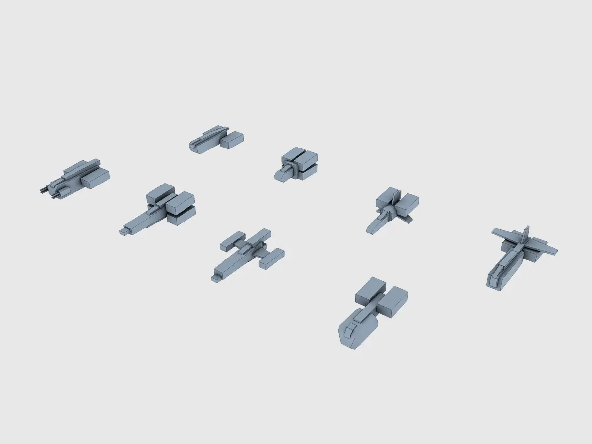 Extreme low-poly armada of spaceships Include: 8 - figters 4 - bombers 3 - gunShips 1 - tanker 1 - battleship 1 - landing ship 1 - drone carrier 1 - cargo ship