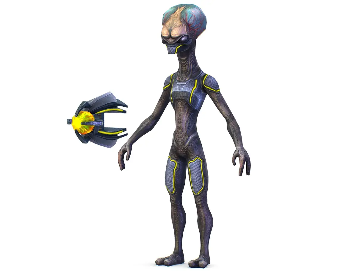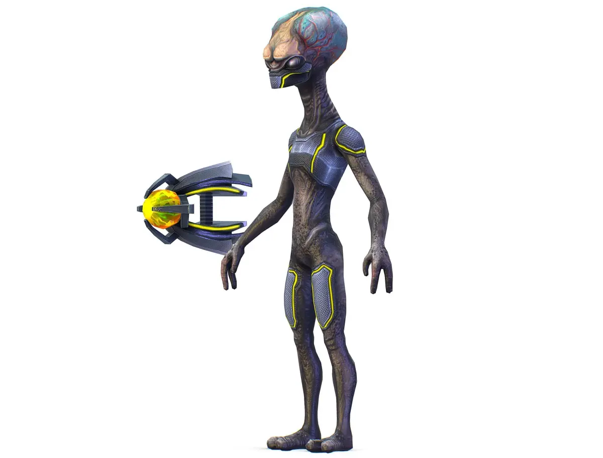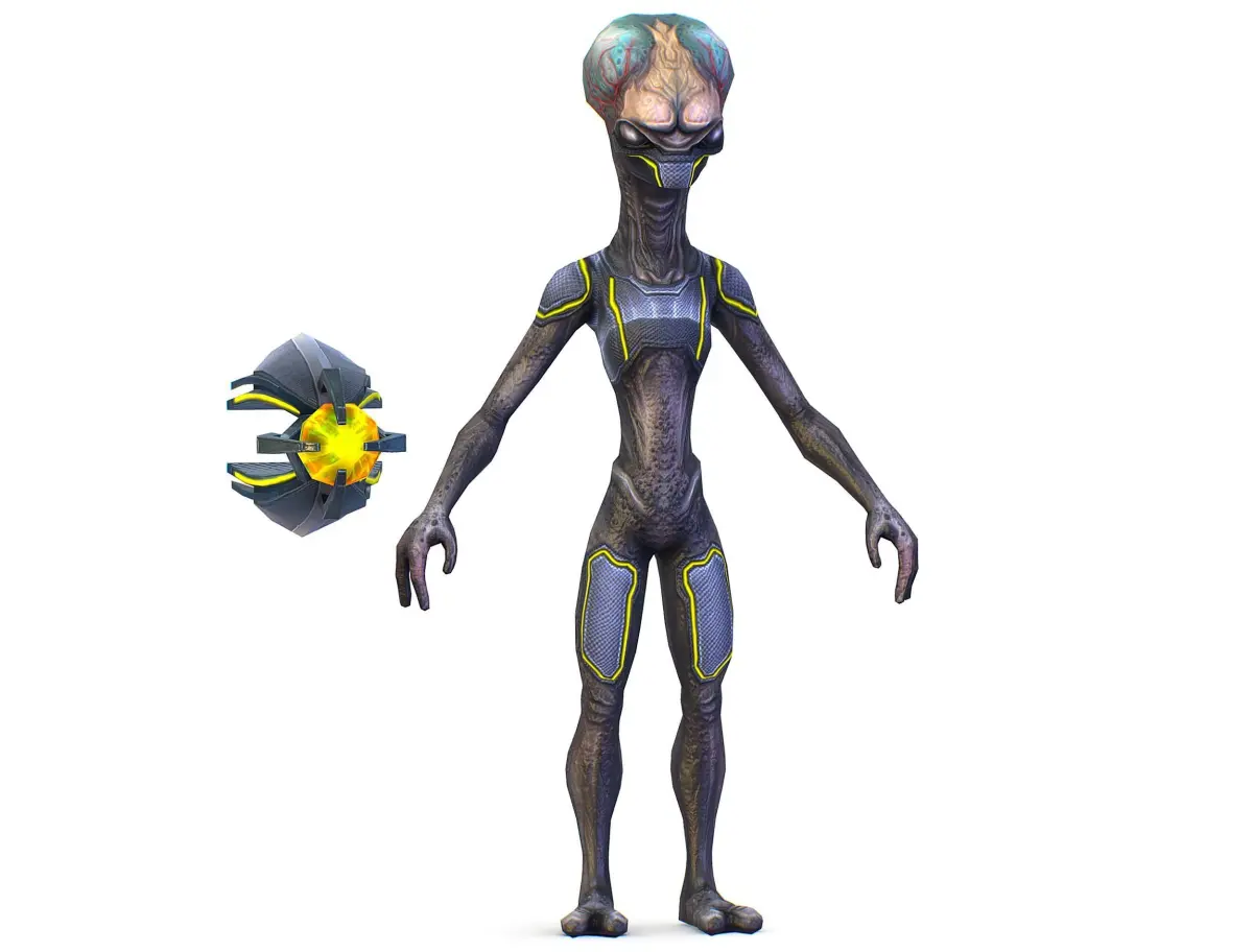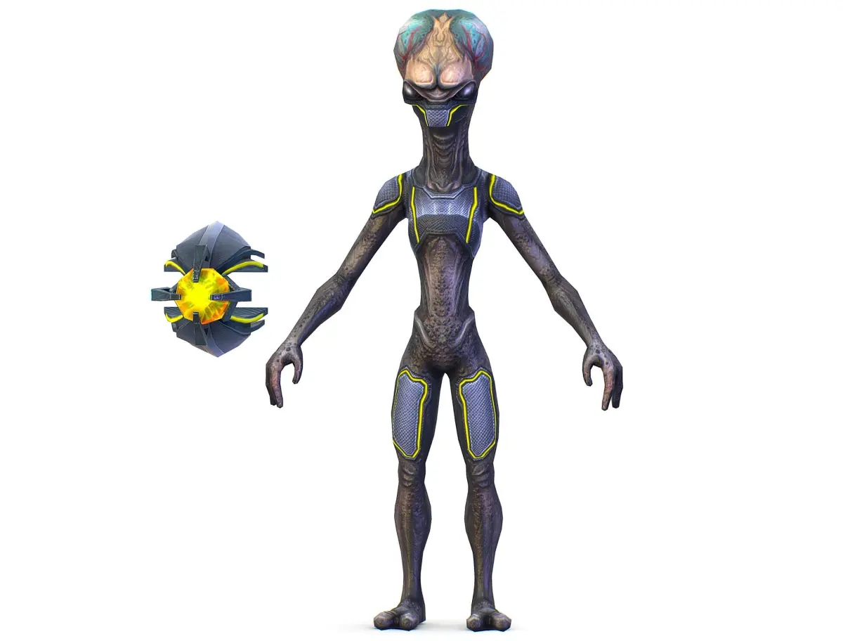 Low Poly Armored Skinny Grey Alien UFO - 512x512 color texture only, no lights 3dsMax file included