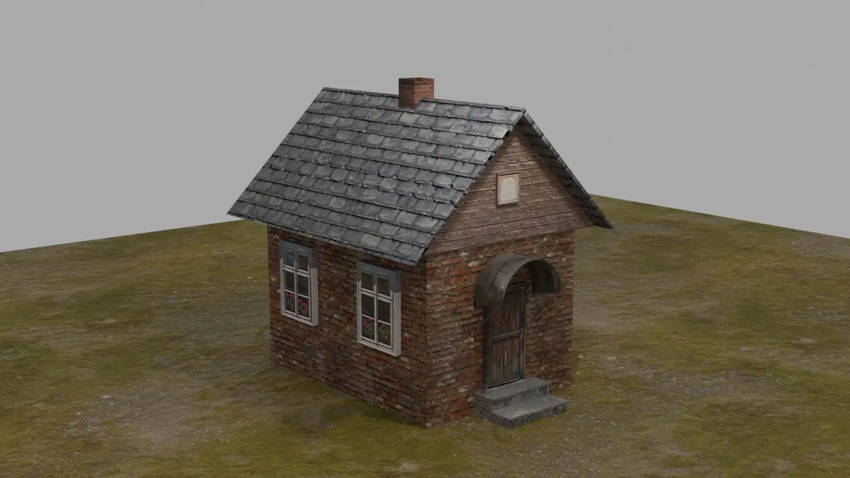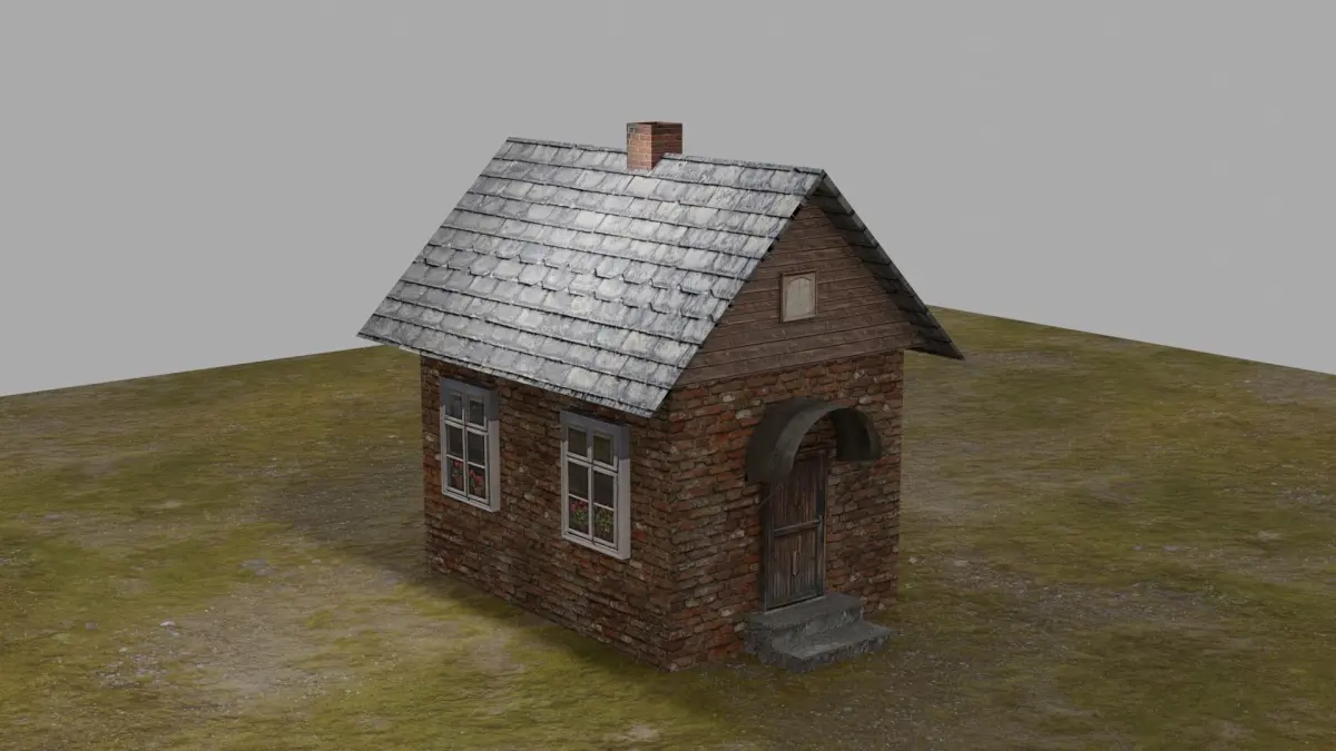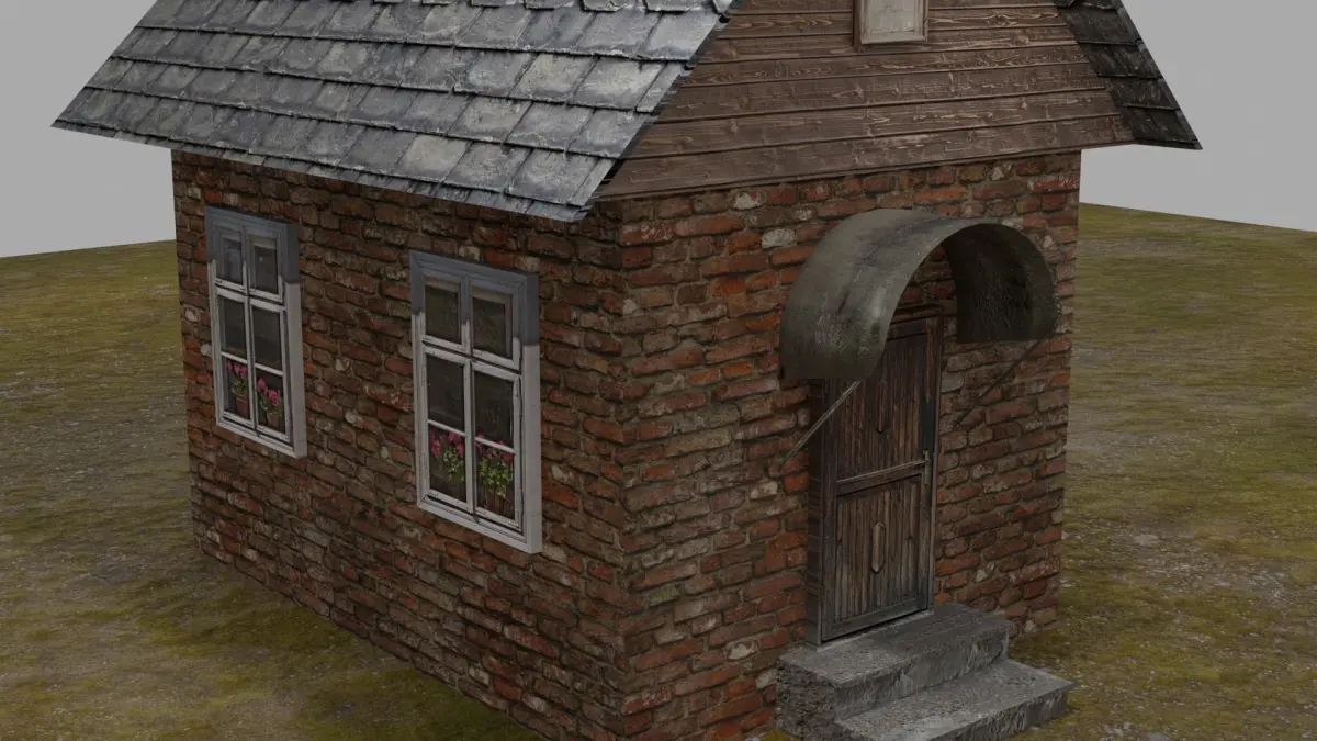 low poly 3D model of a brick house. created from a minimum of polygons. high quality textures are used PBR. The model is perfect for modeling a village or suburban areas. when applying textures, a UV scan was used.