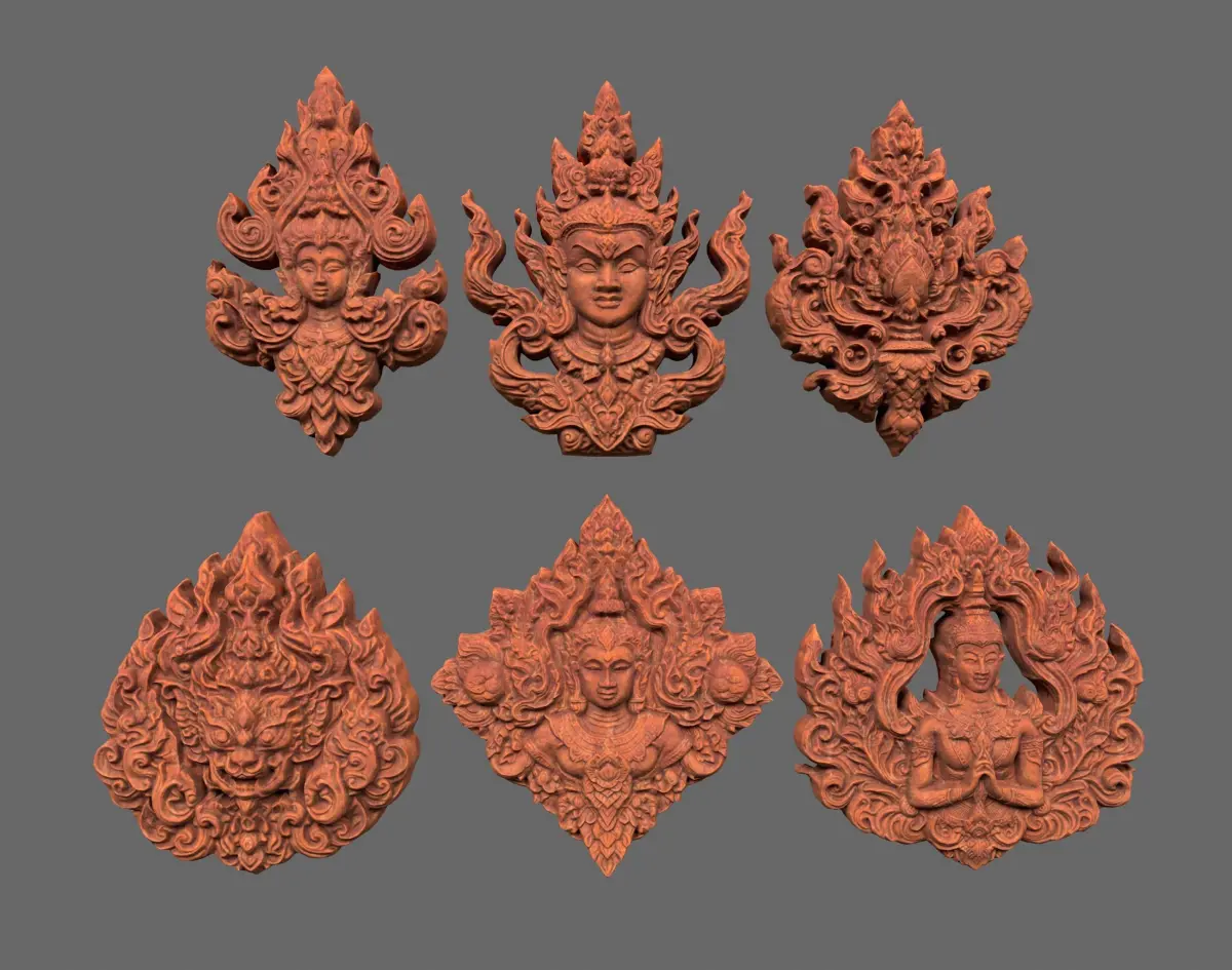 This product consists of 06 3D Asia Temple Decor Ornaments. These models are decorated with patterns and characters, following the ancient Asia style. You can use them to enhance the liveliness of your project.