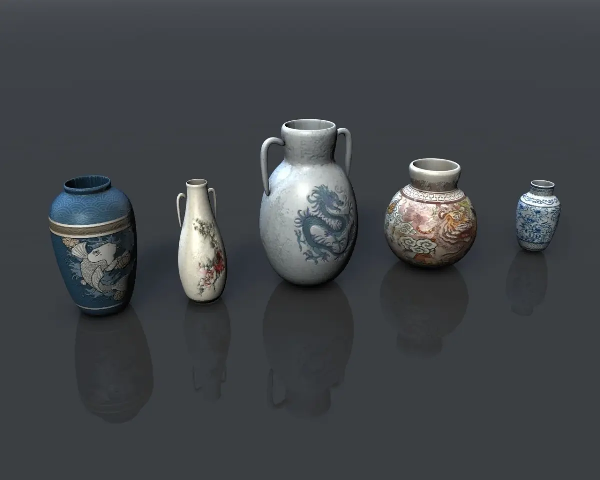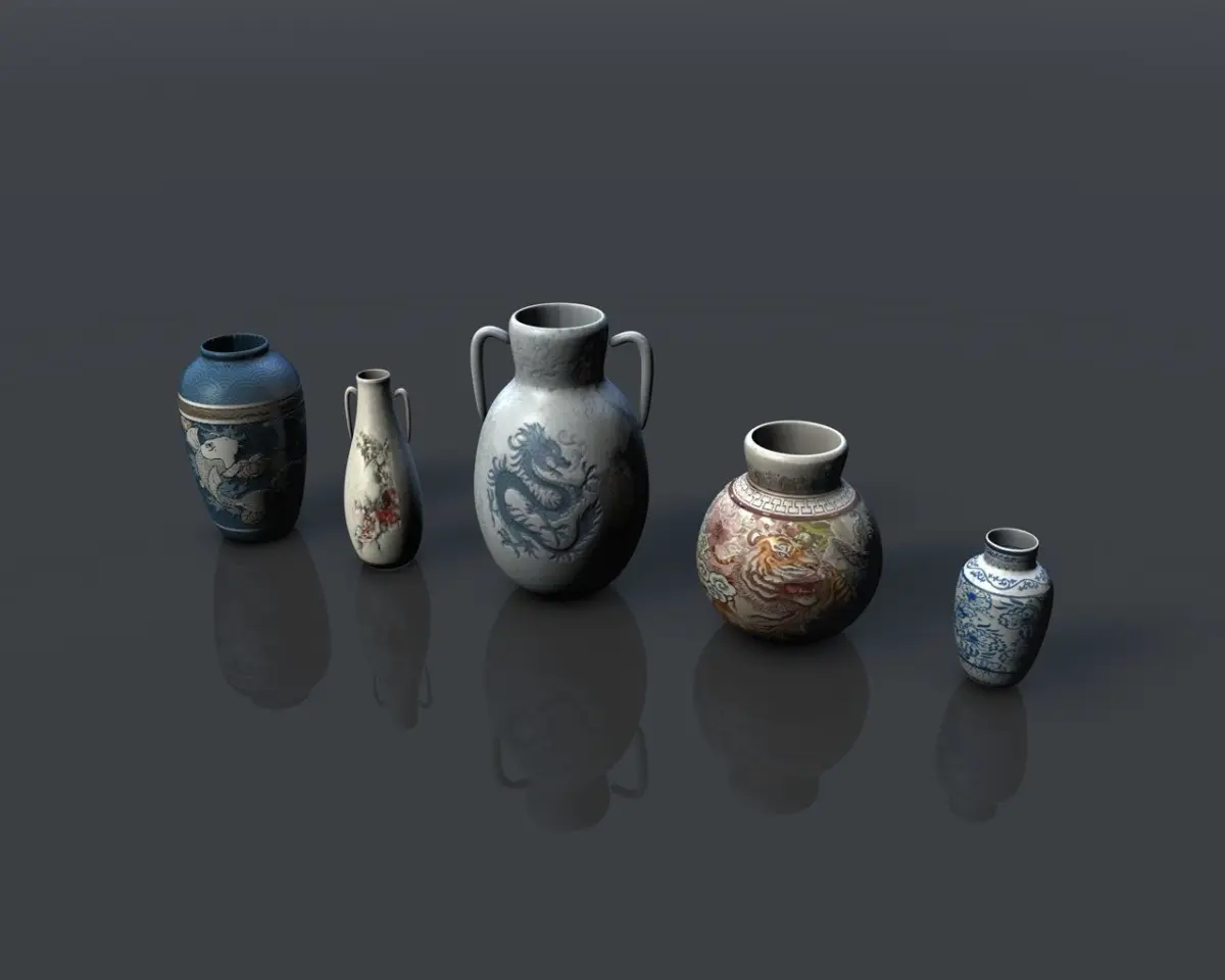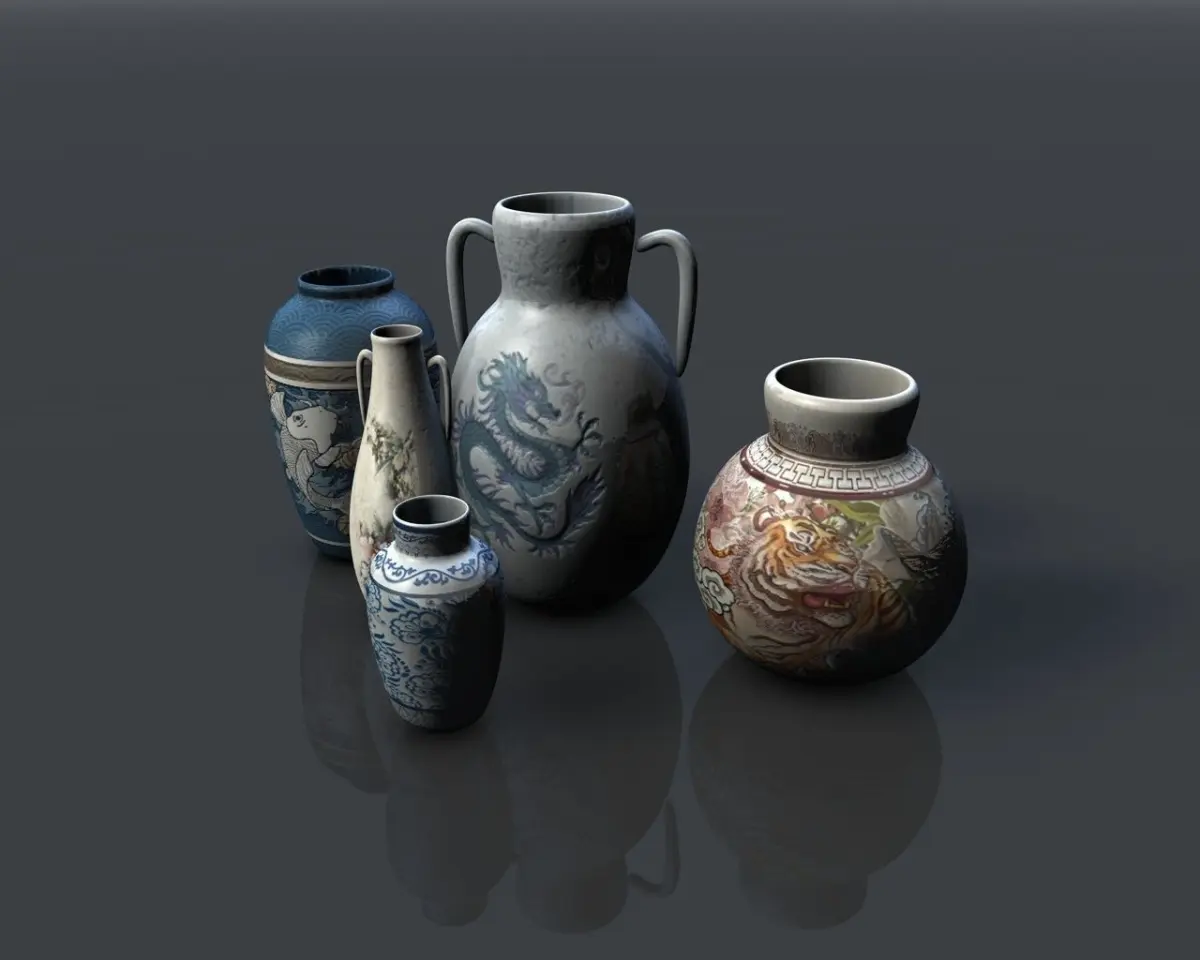 3d model of an asian pottery collection. Perfect for games, scenes or renders. You can use it to build a variety of locations.