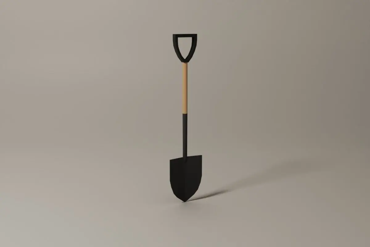 Low poly asset - low poly shovel model. Modeled in Blender 3D. Virtual reality and augmented reality game ready.