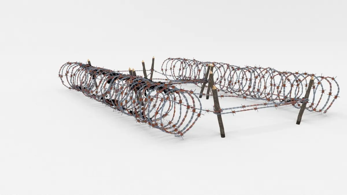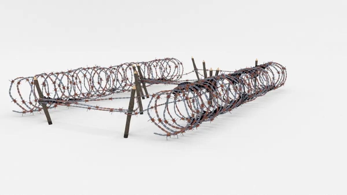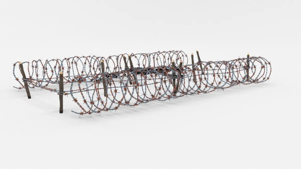 The obstacle is in low poly, the barb is created using plane images.Depending on the 3D Software program used, slight material tweaking might be needed.This 3d model was originally created in Blender 2.78 and rendered with Cycles.The model has materials applied in all formats, and are ready to import and render.The model is built strictly out of quads and is subdivisable.
