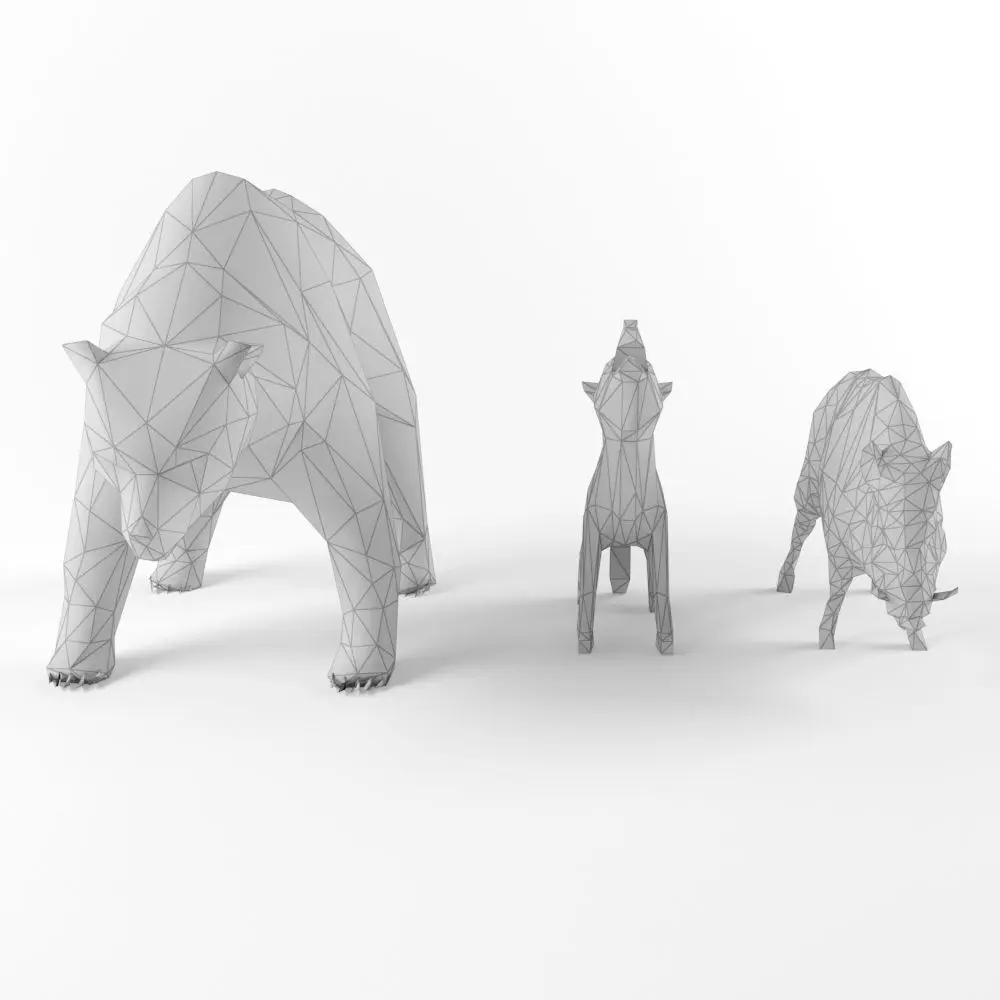 Low poly wild animal (Bear Wolf Boar) set for games and other purposes.