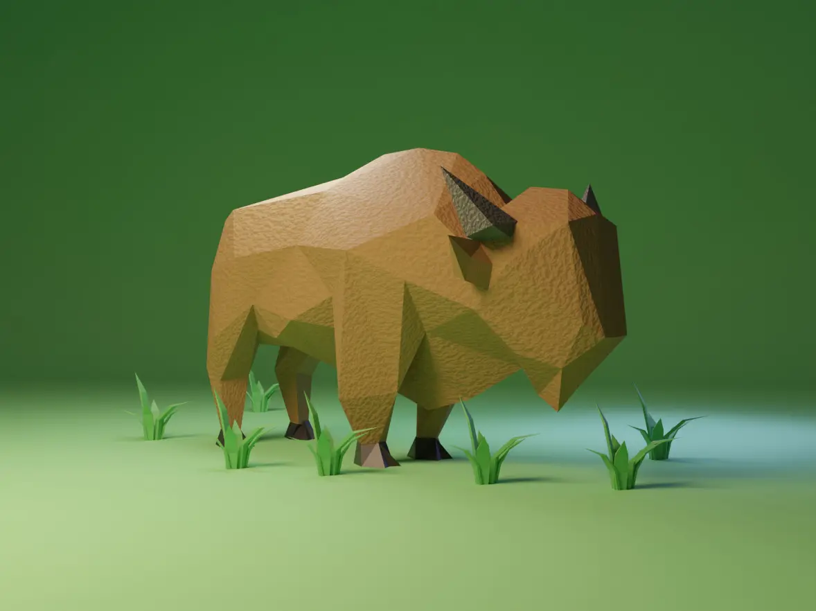 This stylized low-poly bison is perfect for game developers, animators, and 3D artists who need a lightweight, optimized animal model for real-time applications or stylized environments.