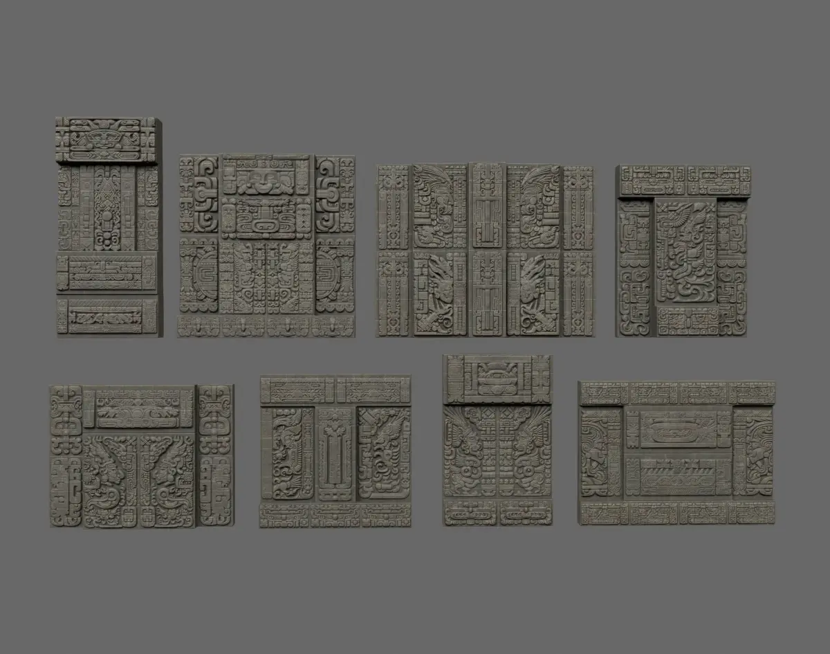 - Polycount: This product features 08 3D models of Mayan Temple Walls with approximately 6000 polygons.