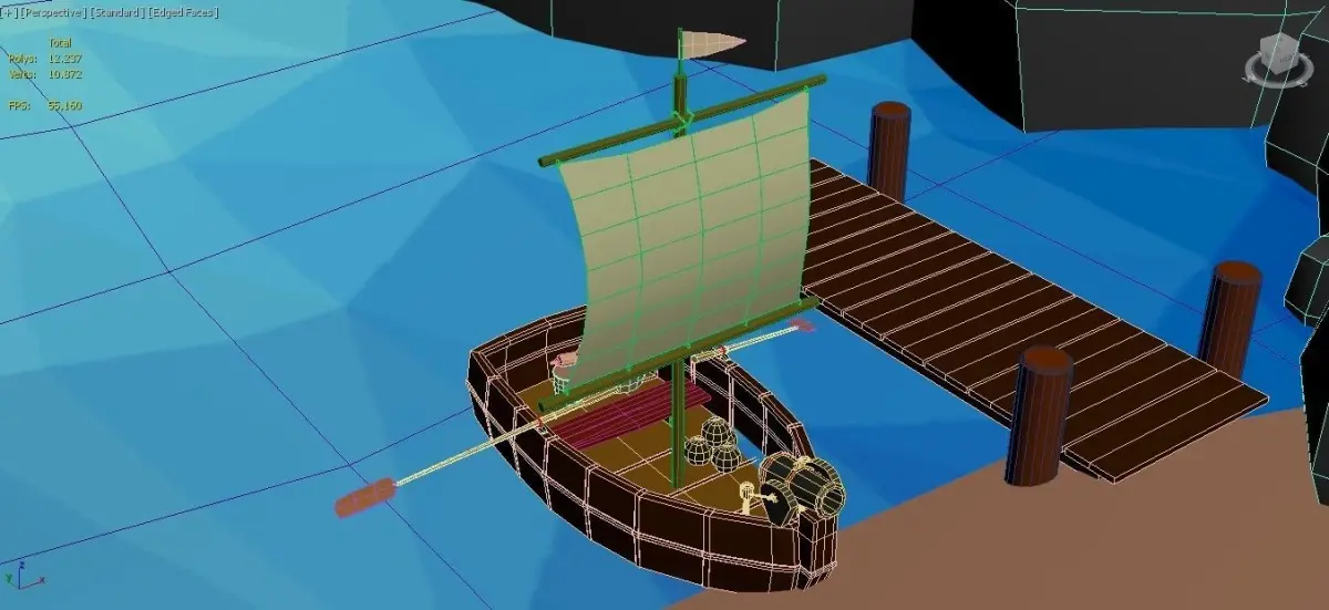 Low poly pirate boat with cannon.Ready for games, animations, AR, VR etc.Made in 3ds max 2018 and rendered wih v-ray 3.60.No third party plugins required.Background enviroment and lighting is not included in the asset package.Used only materials and no textures.Package includes: the boat, Cannon balls, 2x Bottles, 2x Barrels, Lamp, Dock, 2x Rows.Note: Material colors may appear darker or lighter depending on the game engine/ 3d software you will import them to.