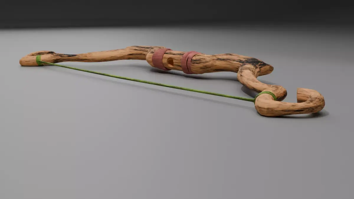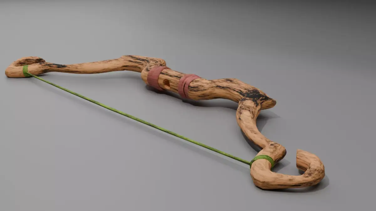 low poly ancient bow is a beautifully crafted weapon that appears to be carved from a single, enchanted branch of weathered driftwood or ancient oak. Its silhouette is defined by aggressive, sweeping curves and unique hooked tips that secure a vibrant green hempen bowstring.The central riser is reinforced with thick, reddish leather wraps, providing a sturdy grip for the archer, while the wood itself features deep, burnt-grain textures and natural imperfections that give the weapon a sense of history and weight.Technical SpecificationsFeatureDetailPolygon Count16,753Vertex Count16,856UV MappingFully UV Unwrapped (overlapping)Material SystemProcedural & Image-based Blender MaterialsGeometryClean topology optimized for subdivisionKey FeaturesStylized Realism: Combines a hand-sculpted organic feel with high-resolution textures, making it versatile for both stylized and semi-realistic art styles.Ready for Animation: The geometry is clean and structured to support bending modifiers or bone rigging for the limbs and string.Blender Optimized: Materials are set up directly within Blender’s Cycles/Eevee engines to showcase the interplay between the rough wood grain and the fibrous texture of the bowstring.Distinctive Silhouette: The recurve-inspired design and hook-end details ensure the weapon stands out in a character's loadout.