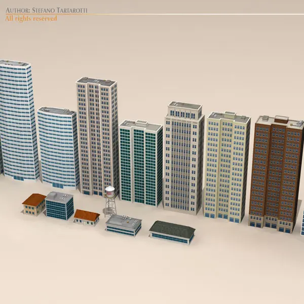 Low polygons textured buildings collection