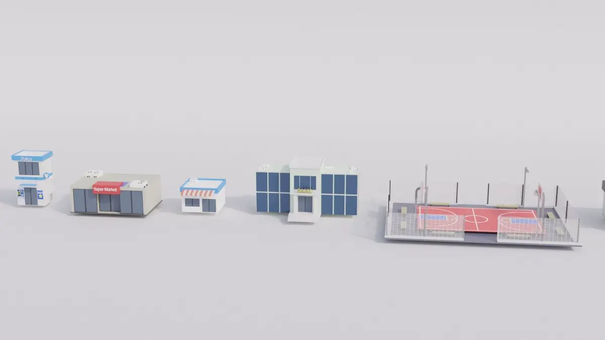Low Poly BUildings group of Free 3D model