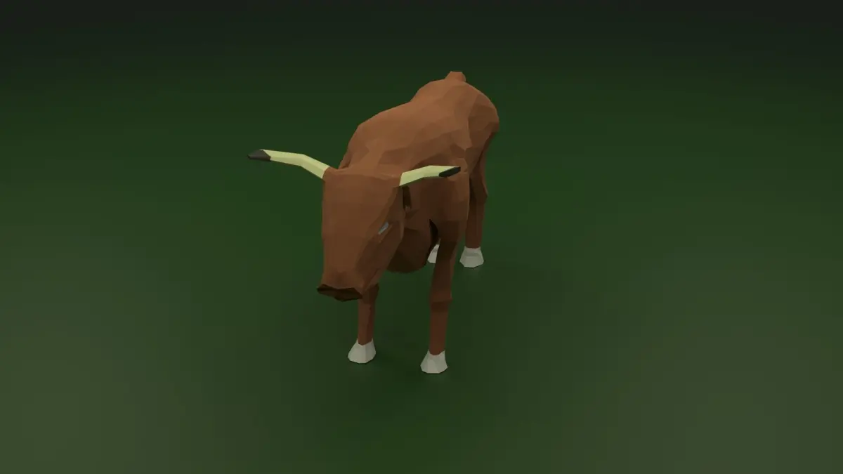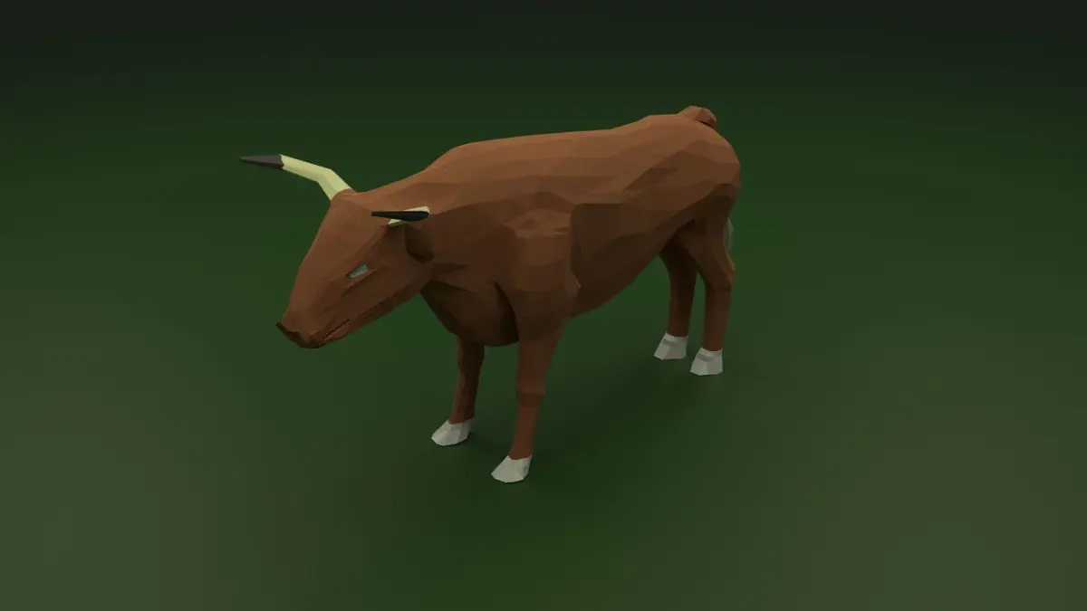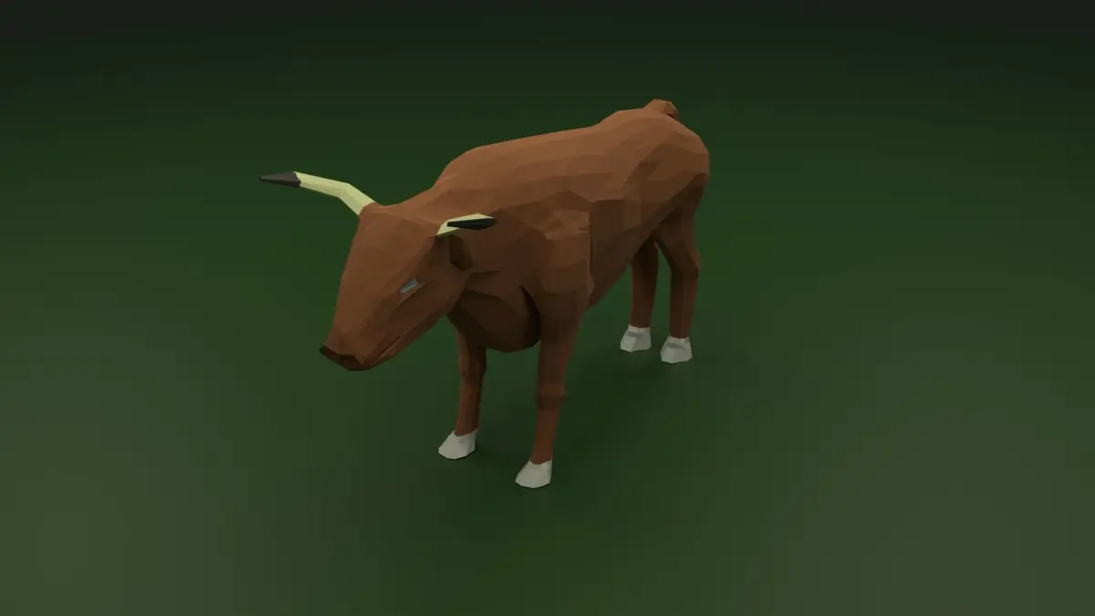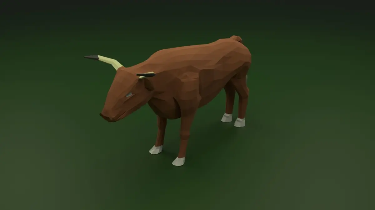 Low Poly Bull 3D model #################################################### Sculpture inspired by geometric shapes of the wildlife animal. Basic materials in the blender - only for better identification of the model.
