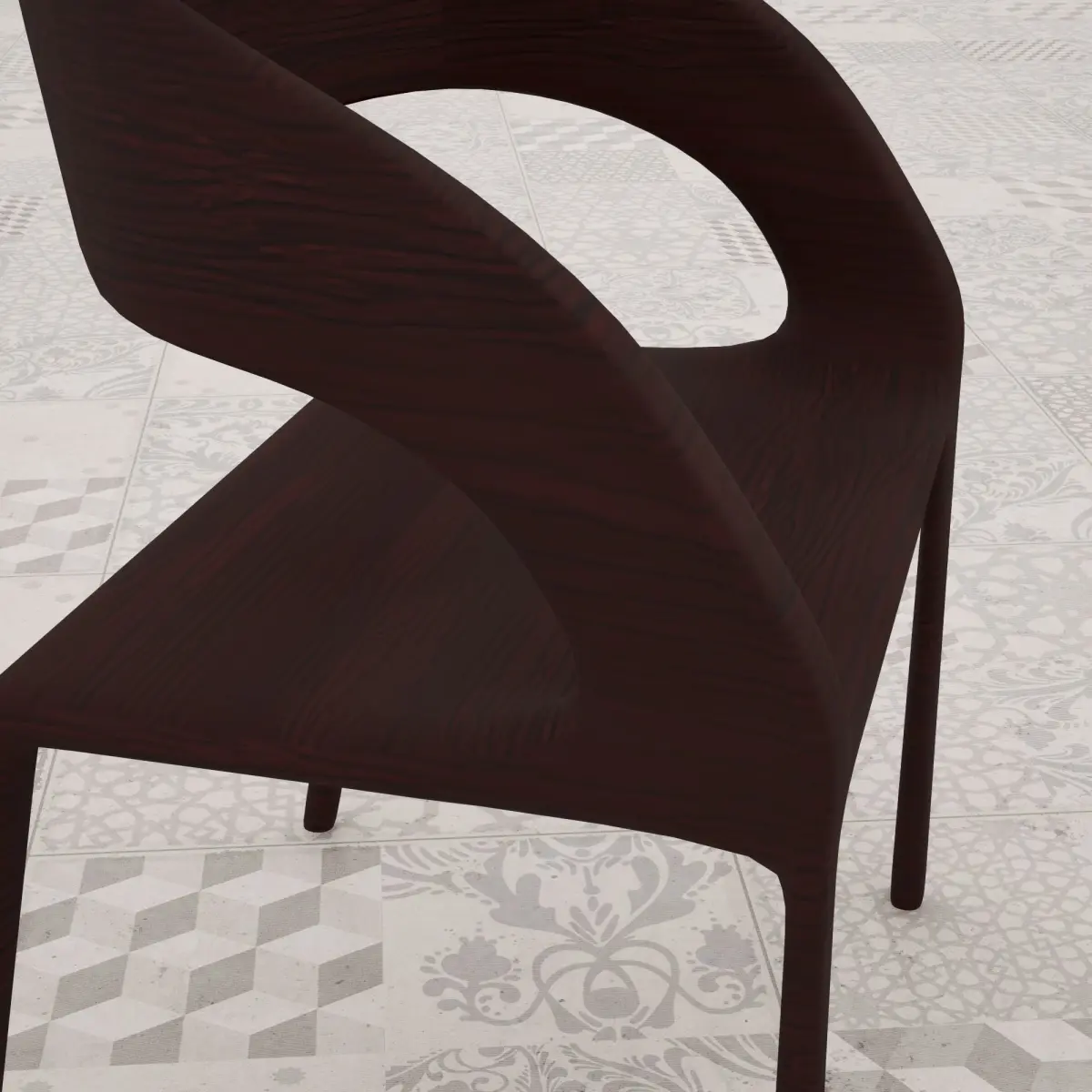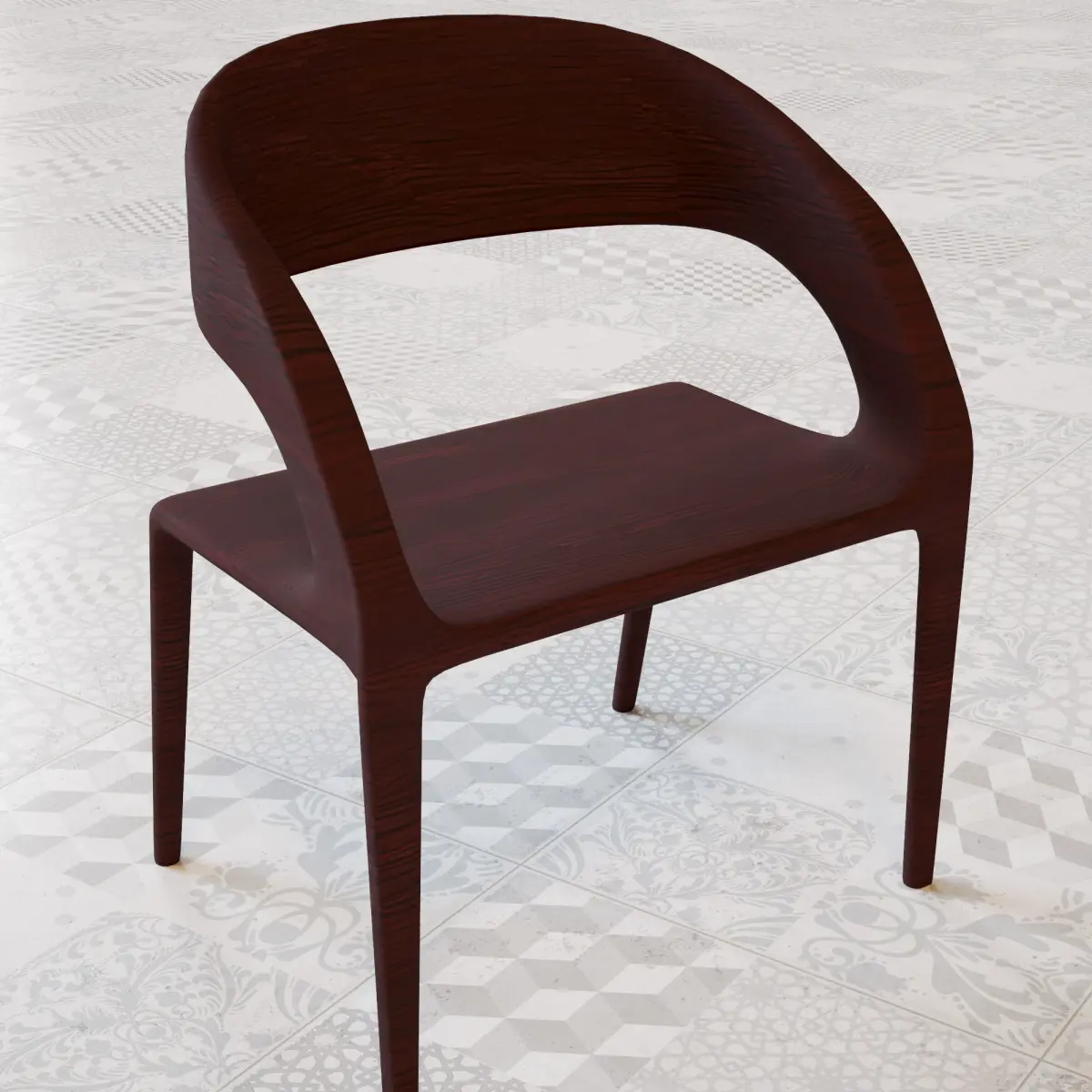 LOW POLY Burgundy Wood Chair