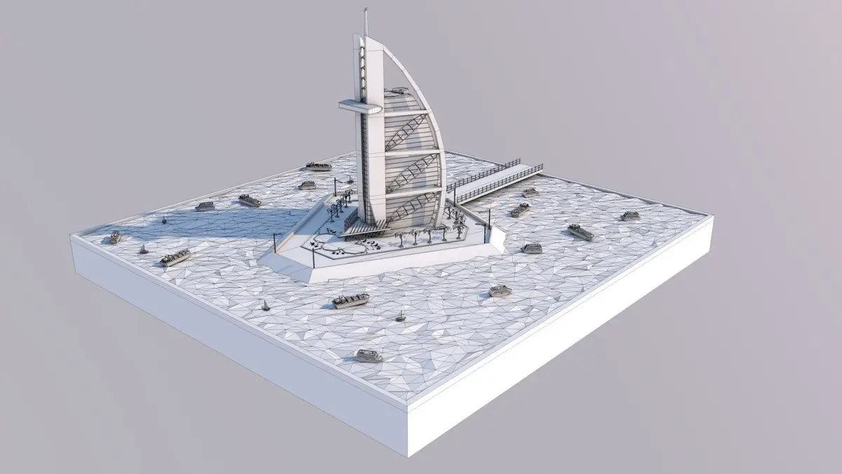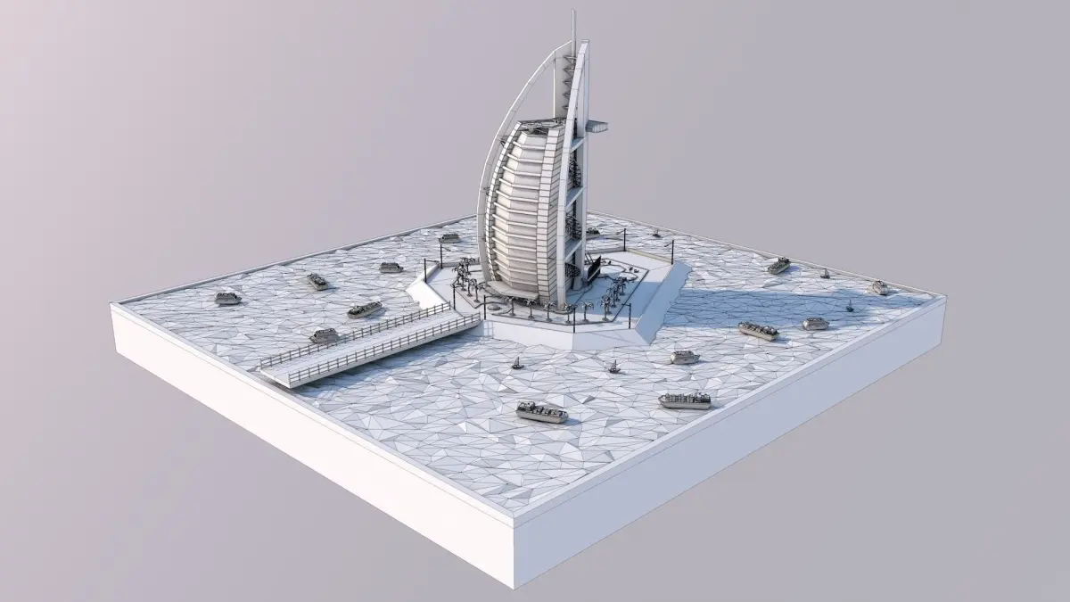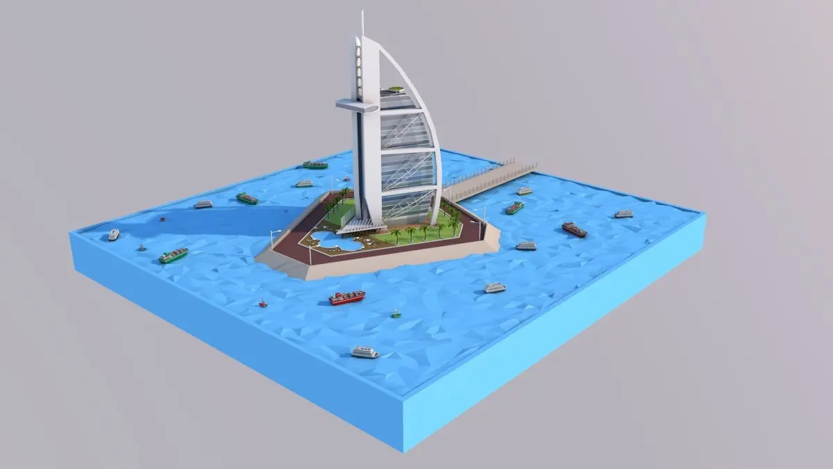 Low Poly Burj Al Arab Hotel Tower Landmark Low-poly 3D model