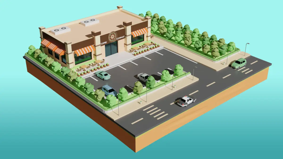 Low poly Caffe Restourant made by blender rendered by Cycles(ready for eevee too)Polygons:62.002Vertices:45.980