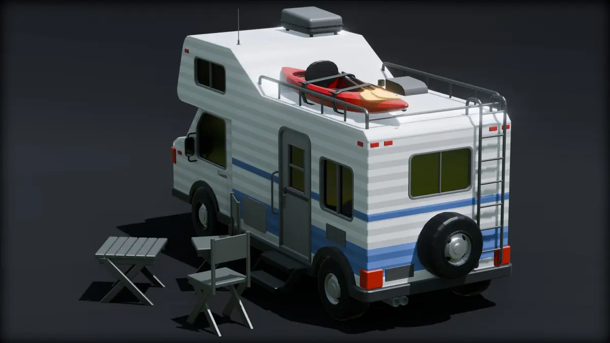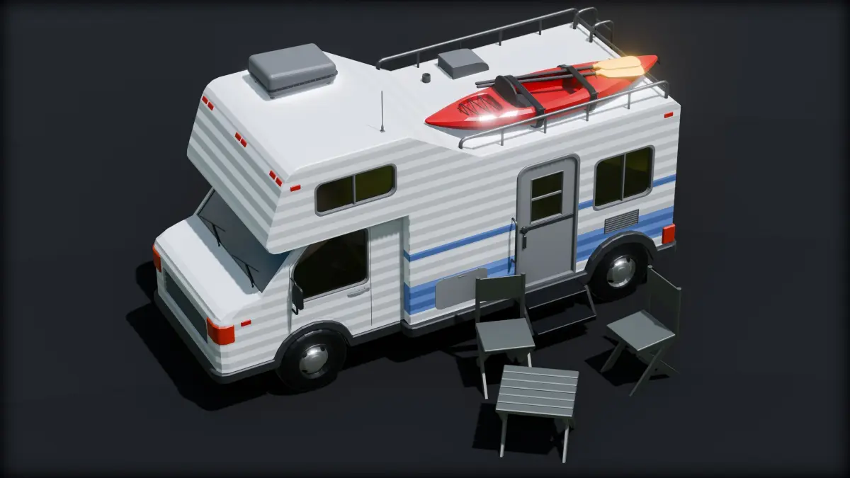 Low Poly Campervan 3d model, made with Blender and rendered in Eevee.