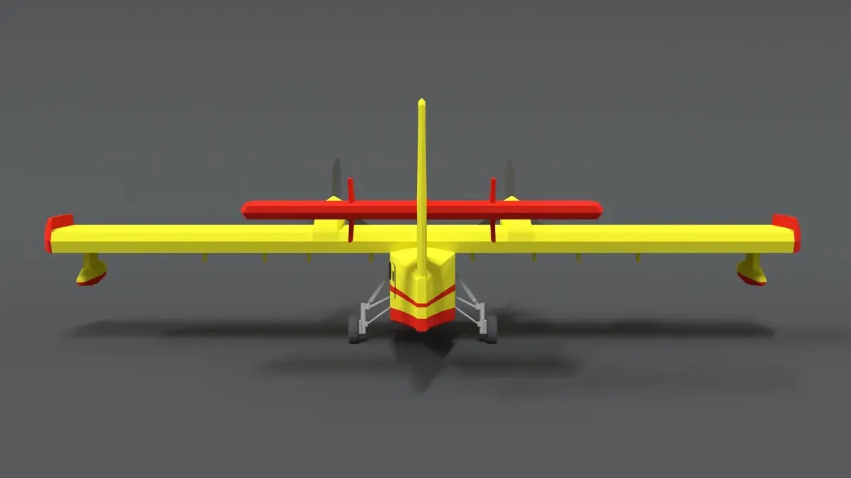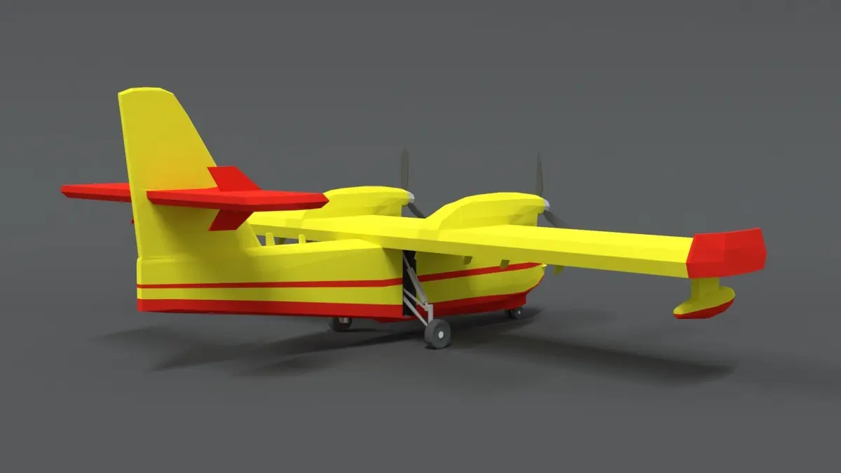 This is a low poly 3d model of a Canadair CL 215 airplane. The low poly airplane was modelled and prepared for low-poly style renderings, background, general CG visualization presented as a mesh with quads and few tris.
