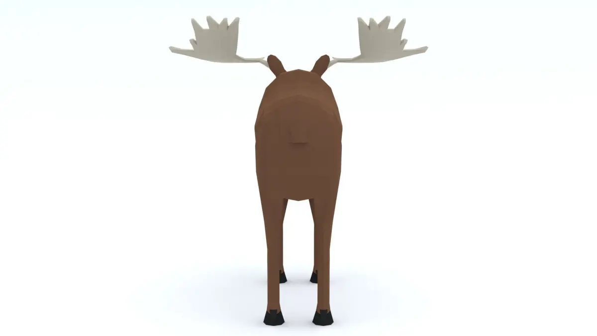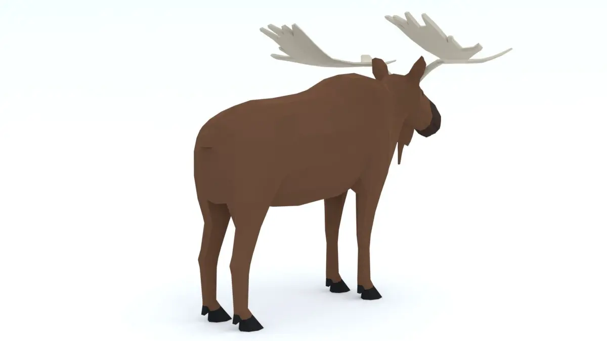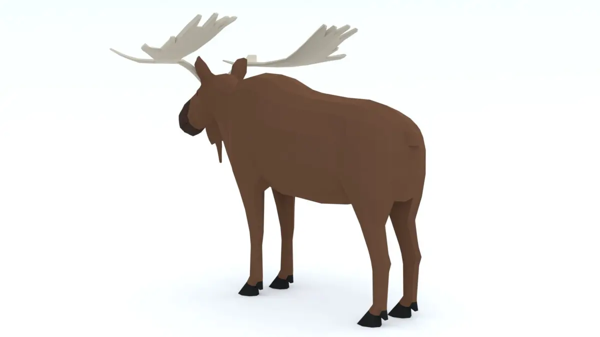 This is a low poly 3D model of a Moose. The low poly Moose was modeled and prepared for low-poly style renderings, background, general CG visualization presented as 1 mesh with quads only.